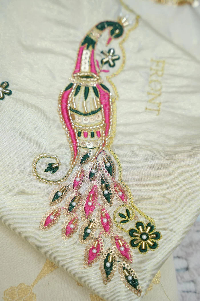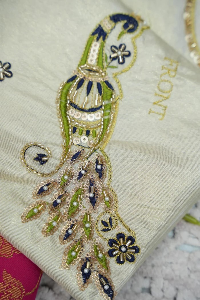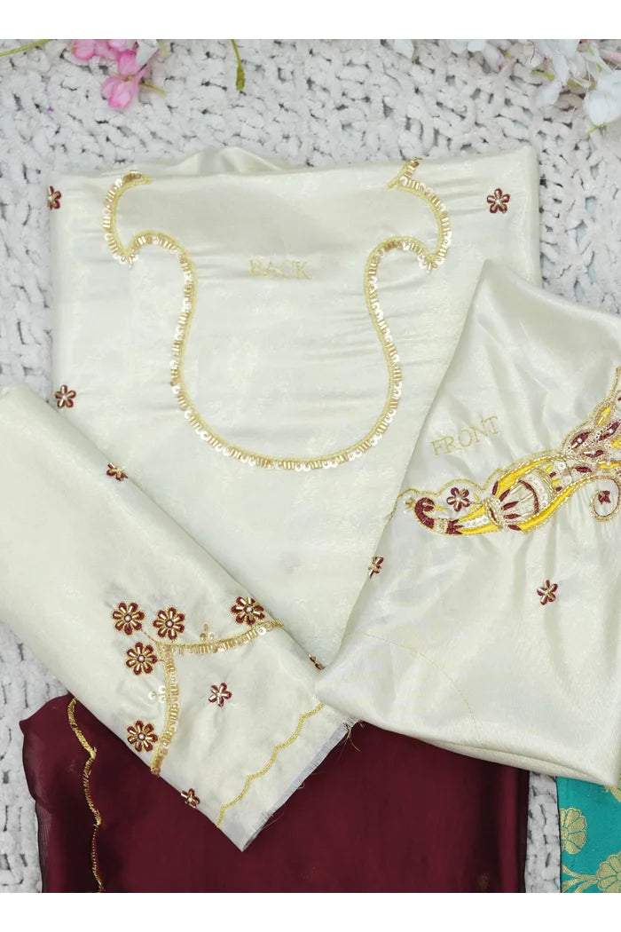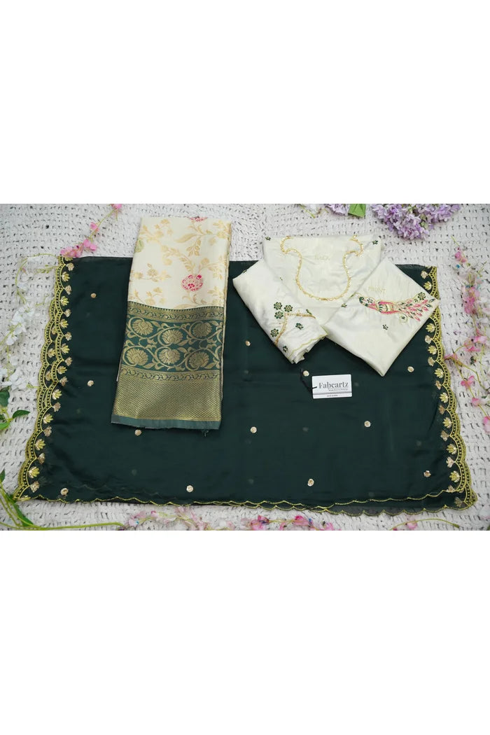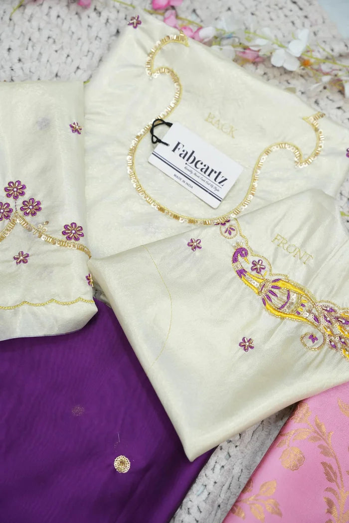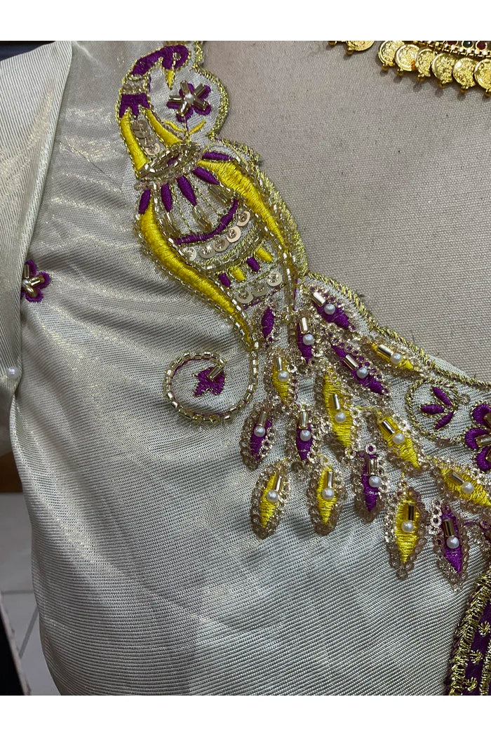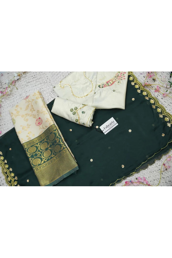 Crafted from Taffeta Satin (Lichi Silk) with intricate Zari work, offering a rich and elegant look.