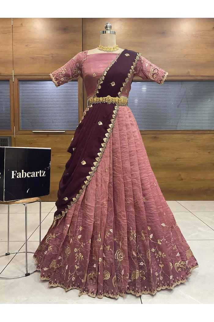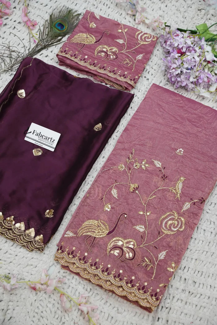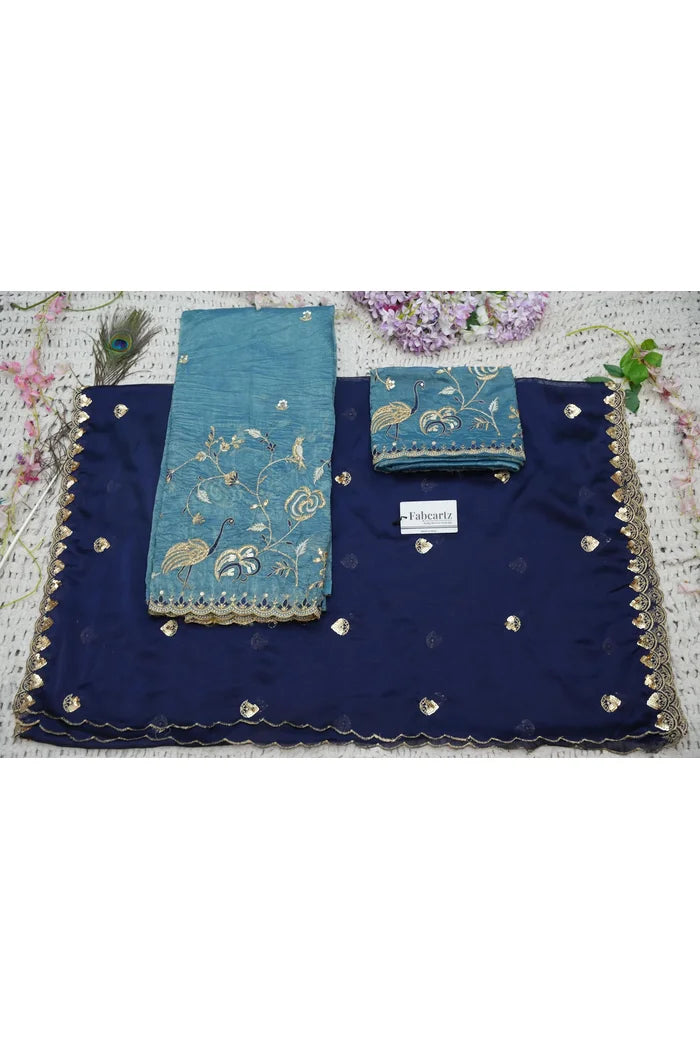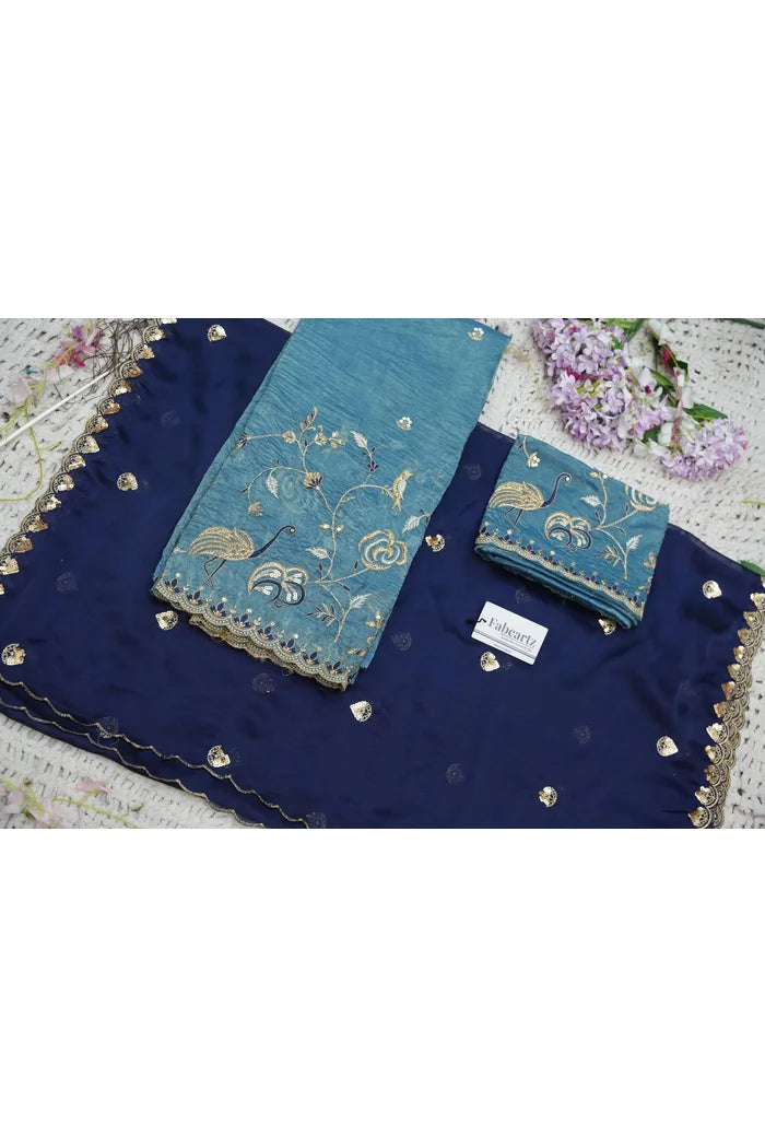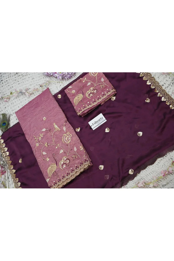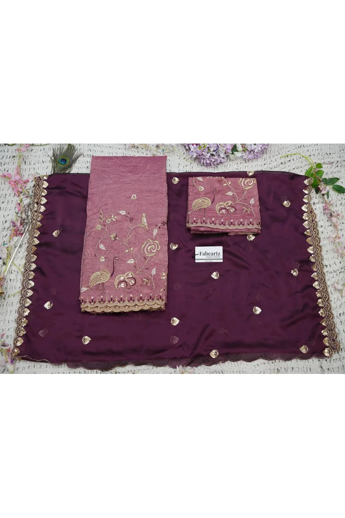 Crafted from Taffeta Satin (Lichi Silk) with intricate Zari work, offering a rich and elegant look.