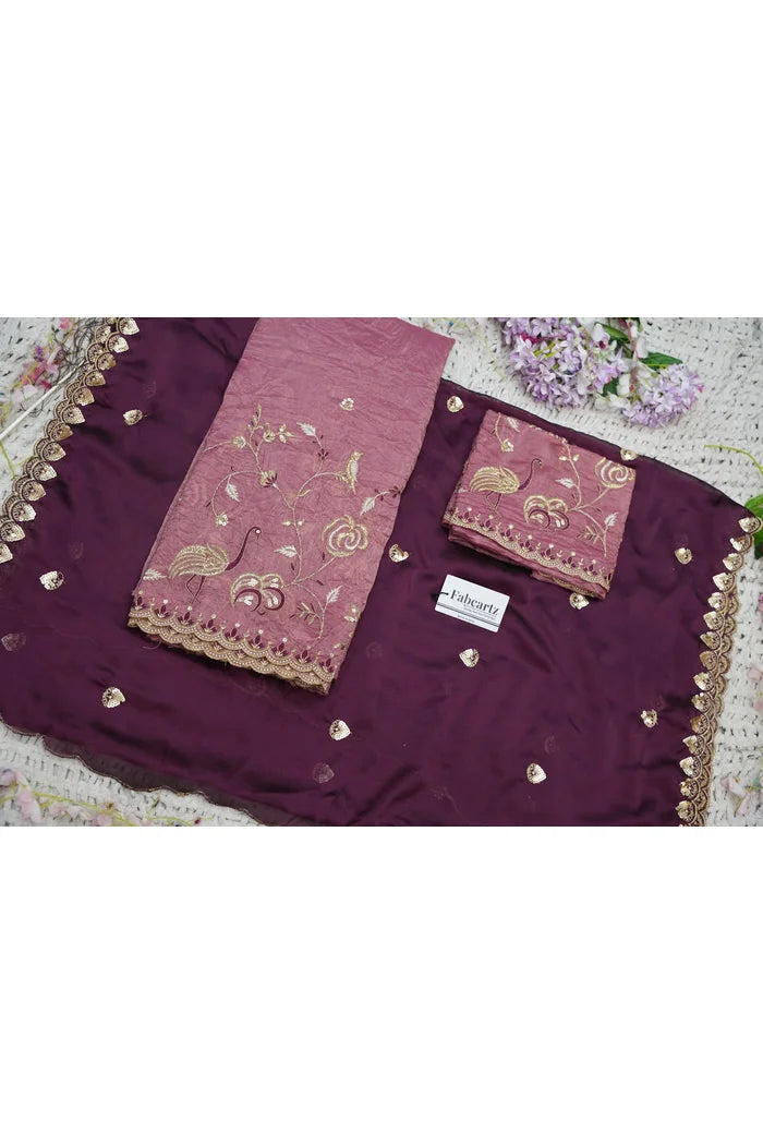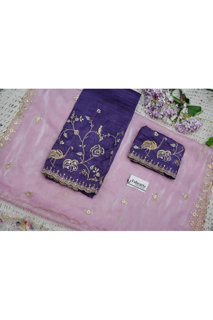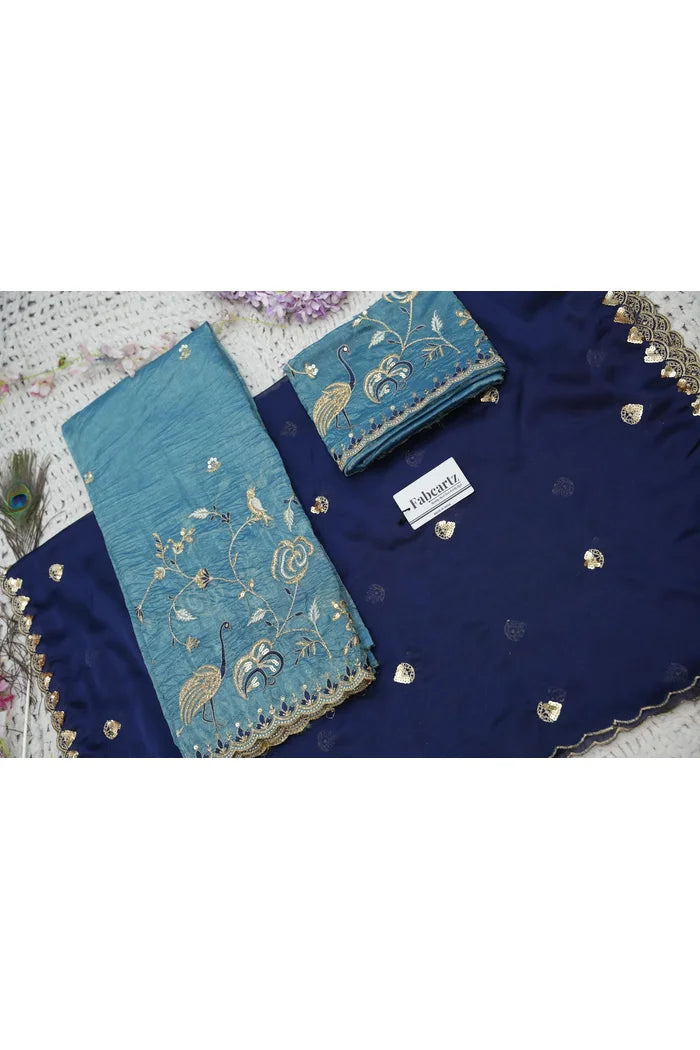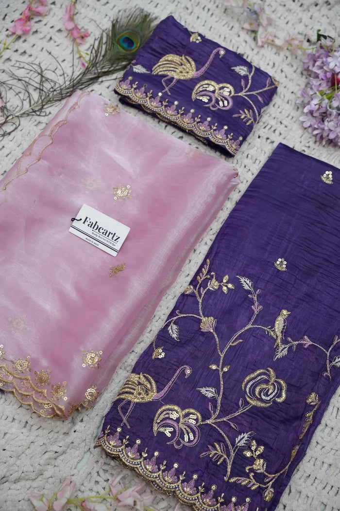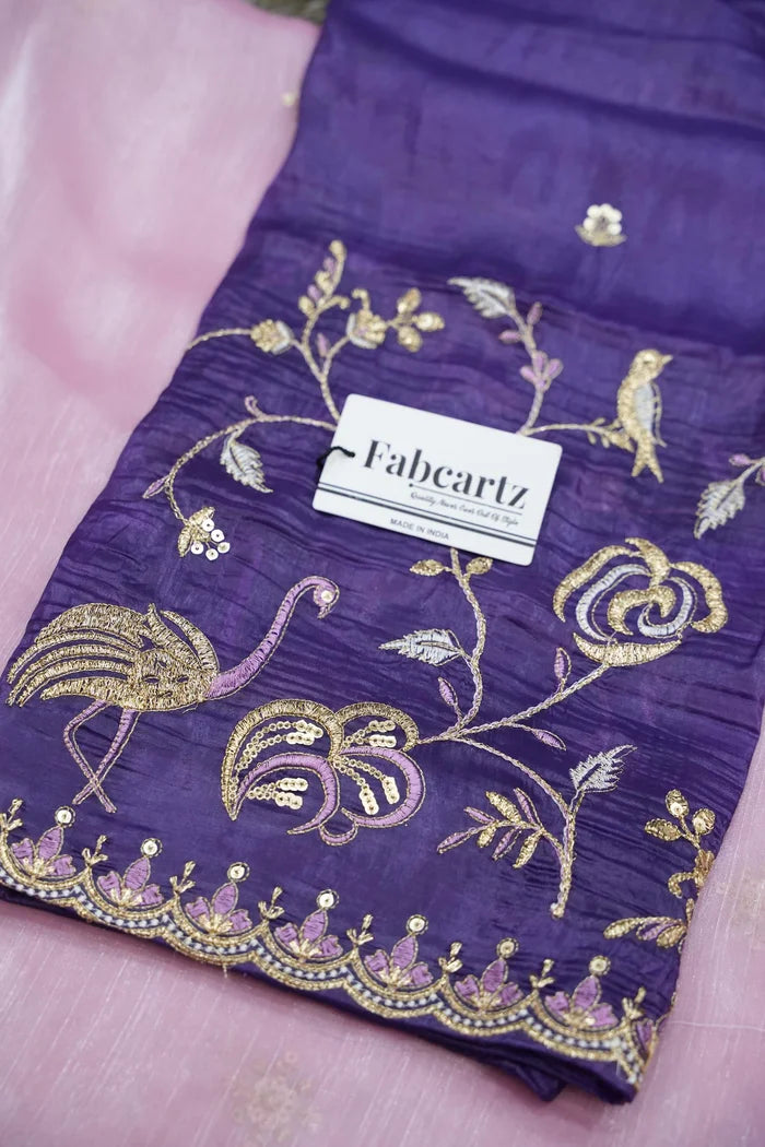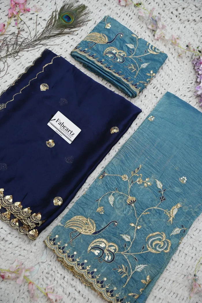 Crafted from Taffeta Satin (Lichi Silk) with intricate Zari work, offering a rich and elegant look.