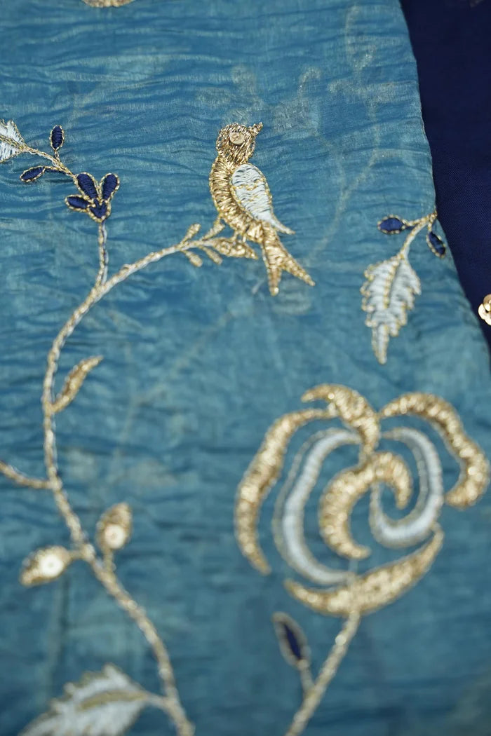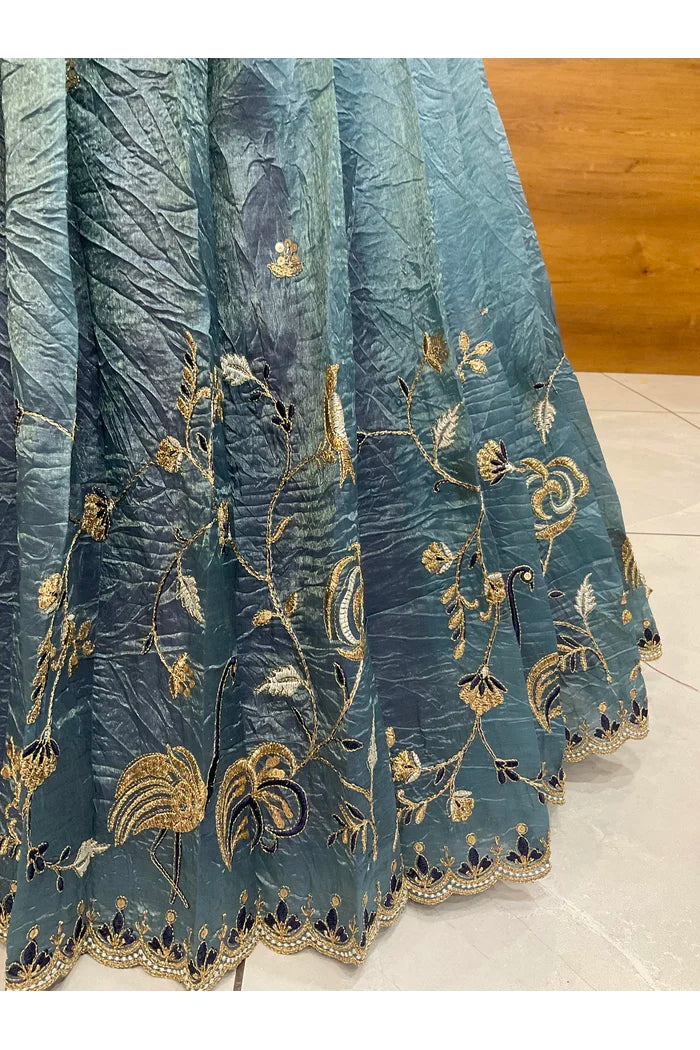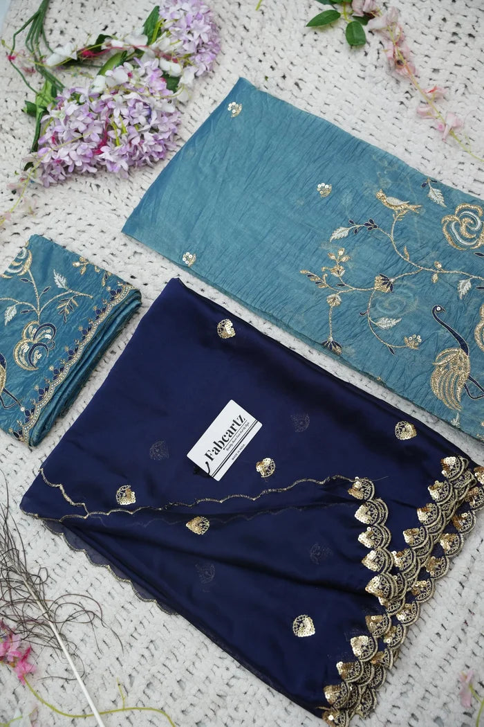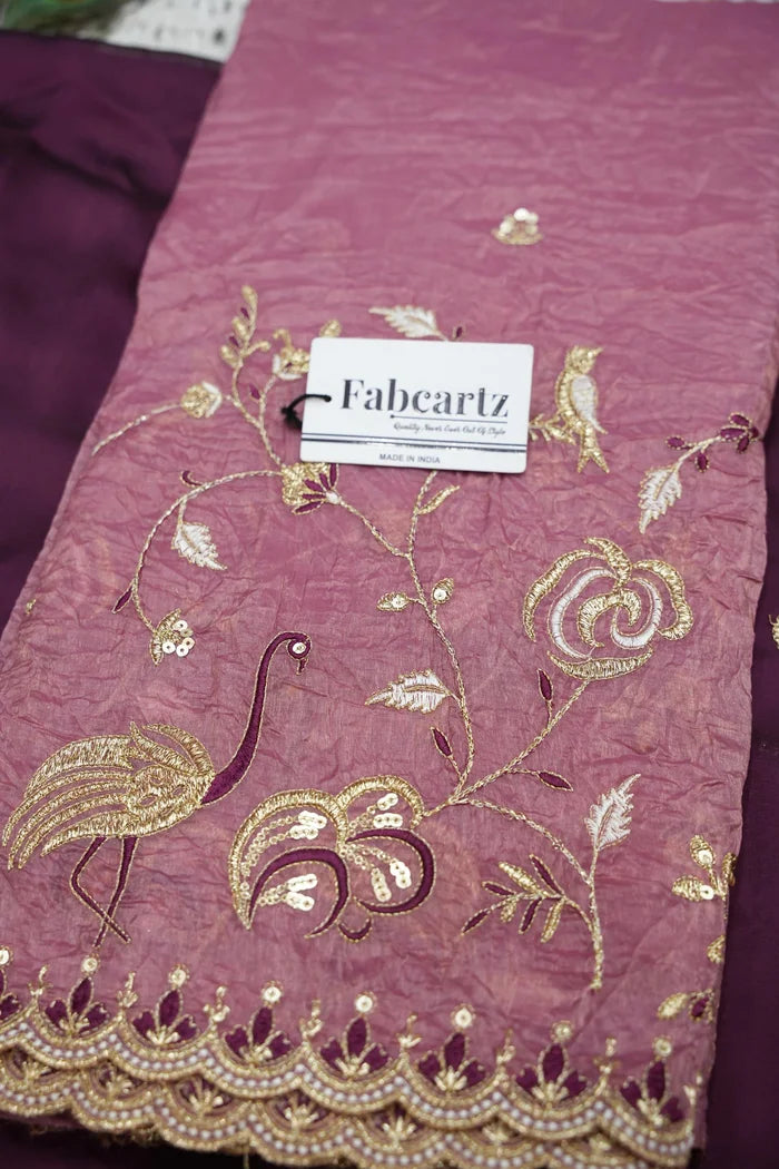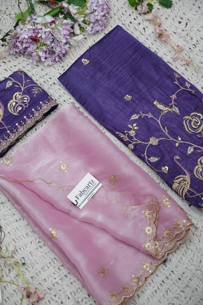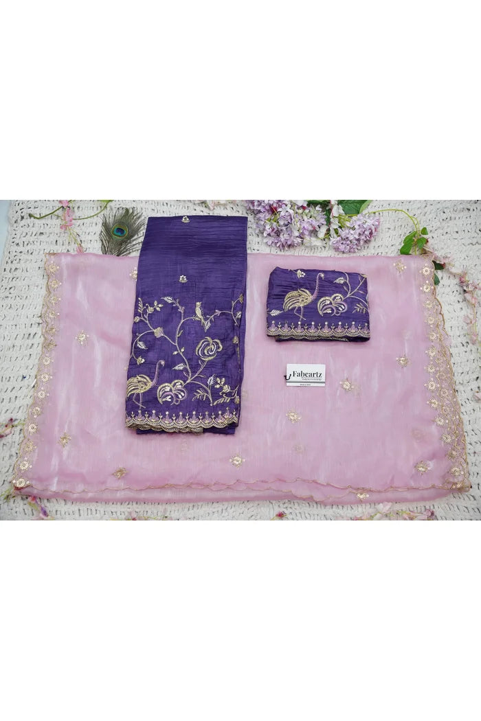 Crafted from Taffeta Satin (Lichi Silk) with intricate Zari work, offering a rich and elegant look.