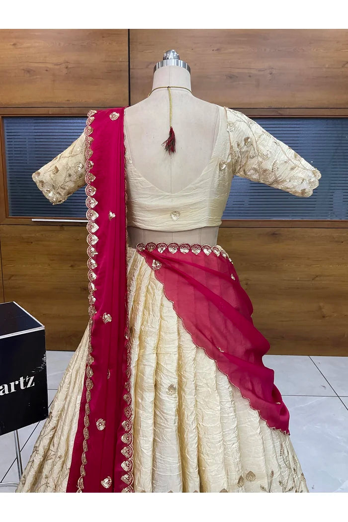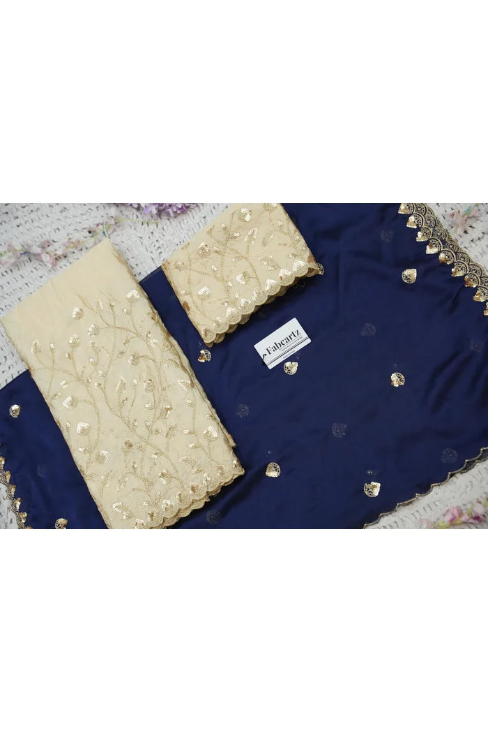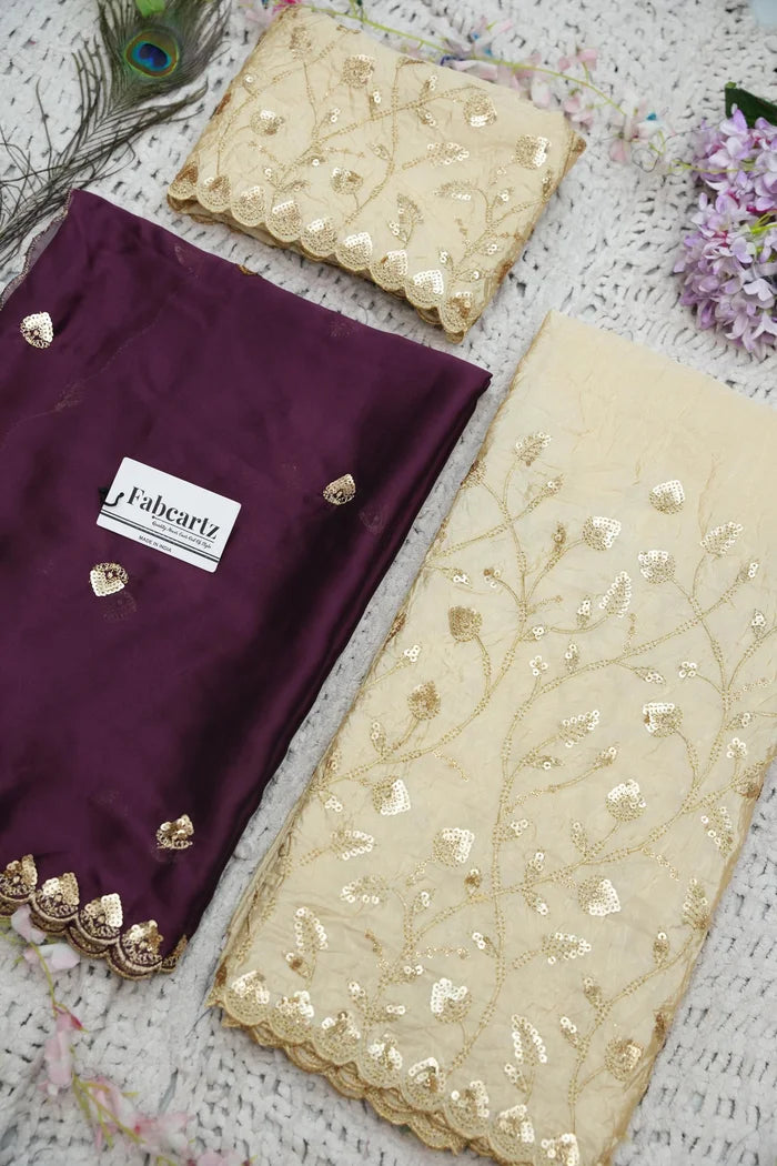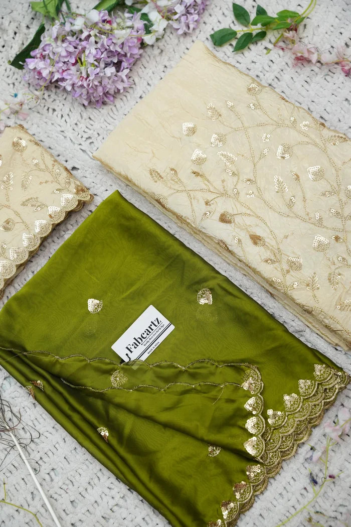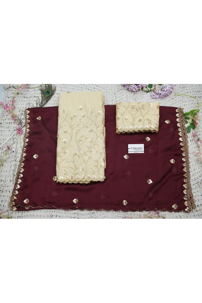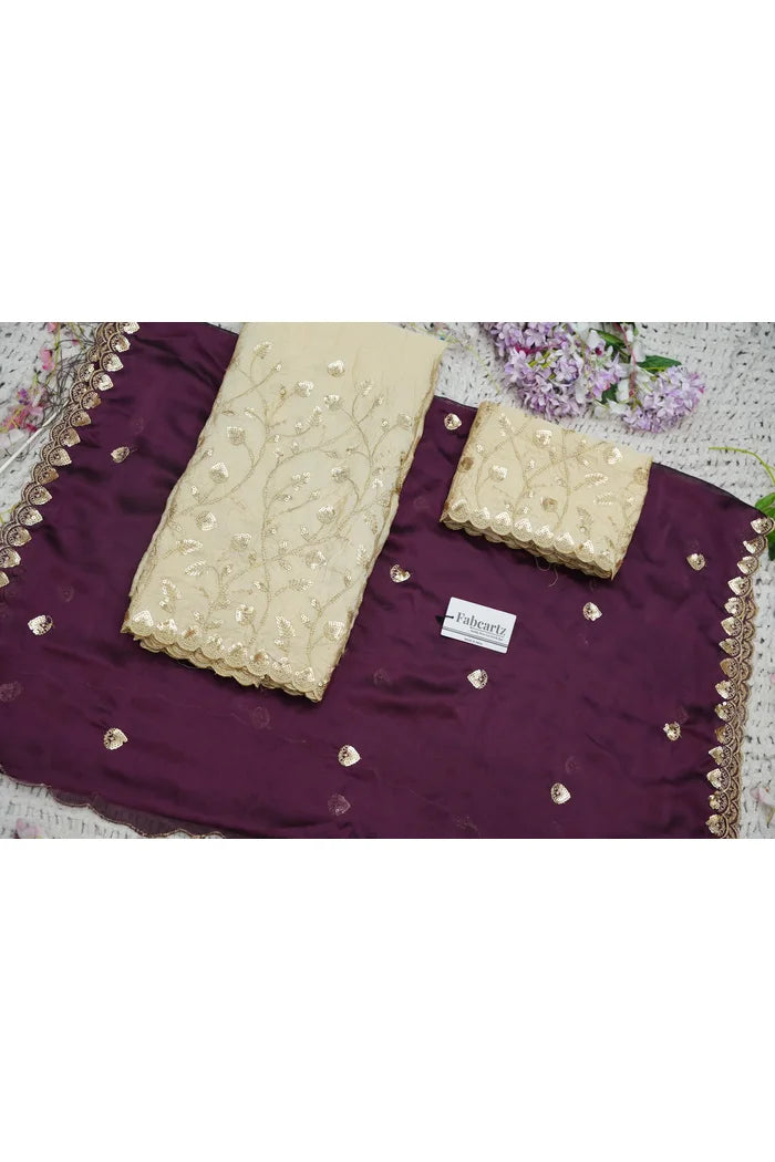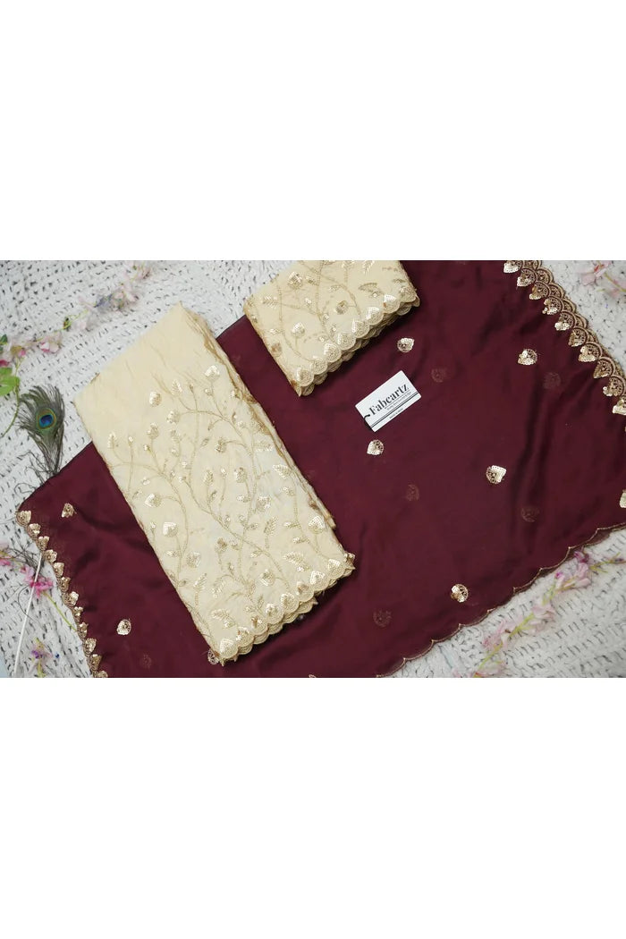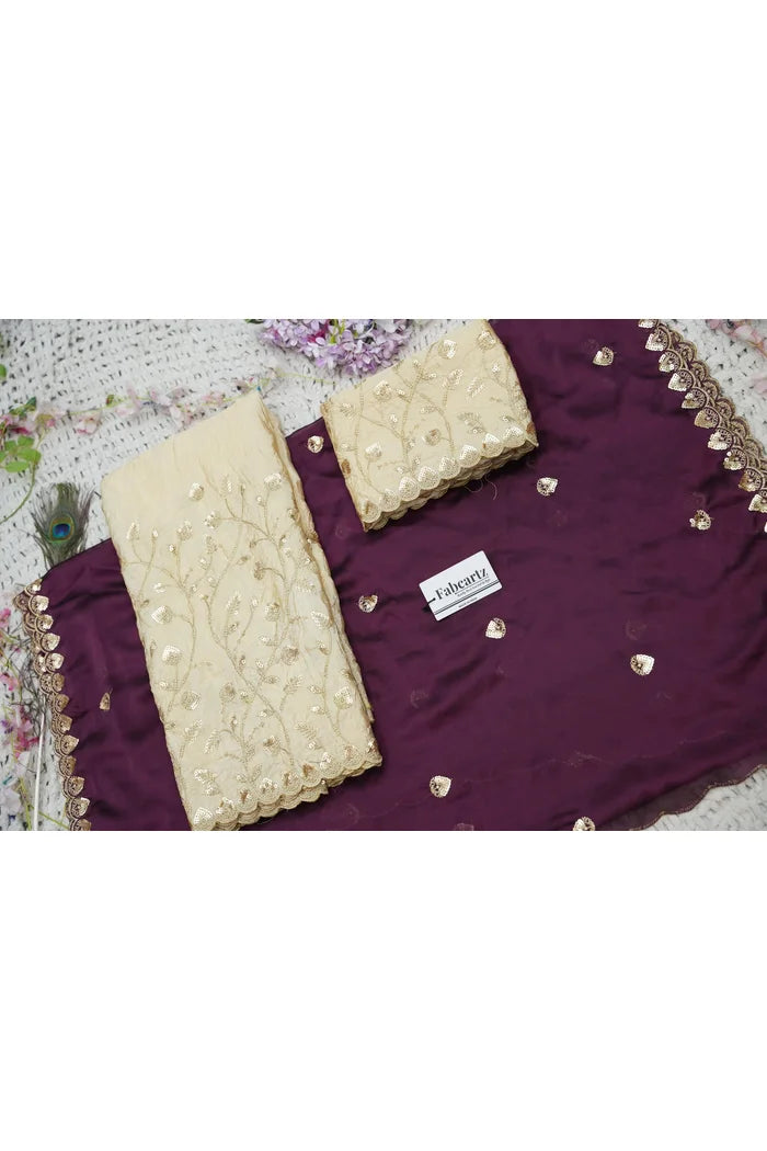Crafted from Taffeta Satin (Lichi Silk) with intricate Zari work, offering a rich and elegant look.