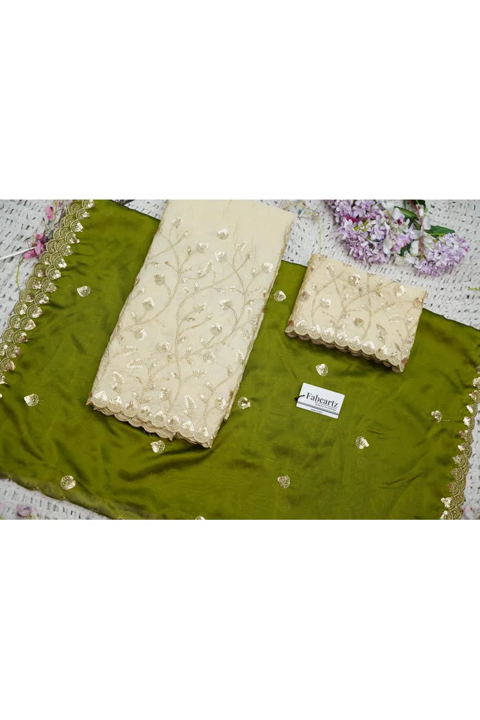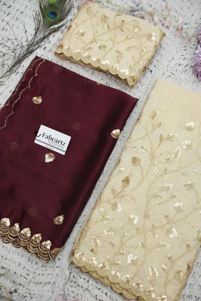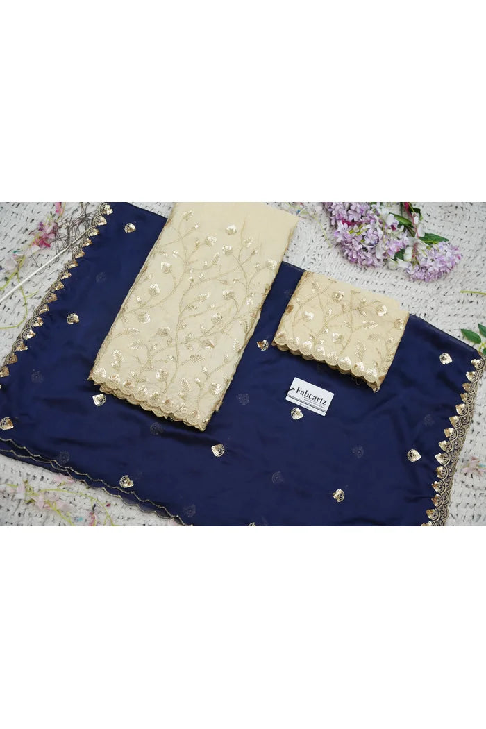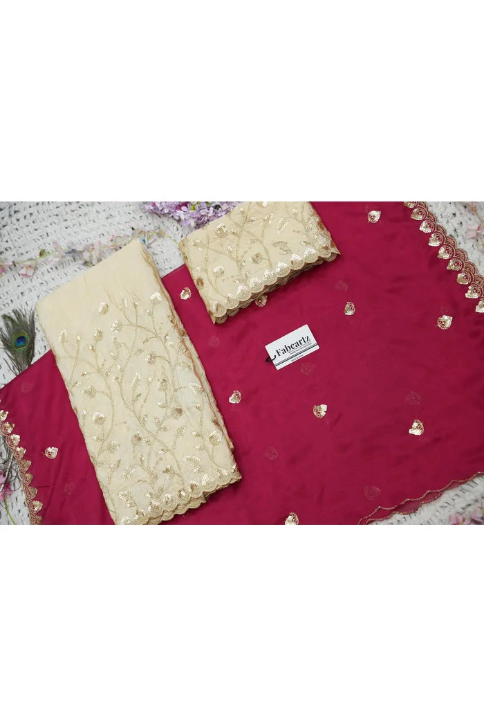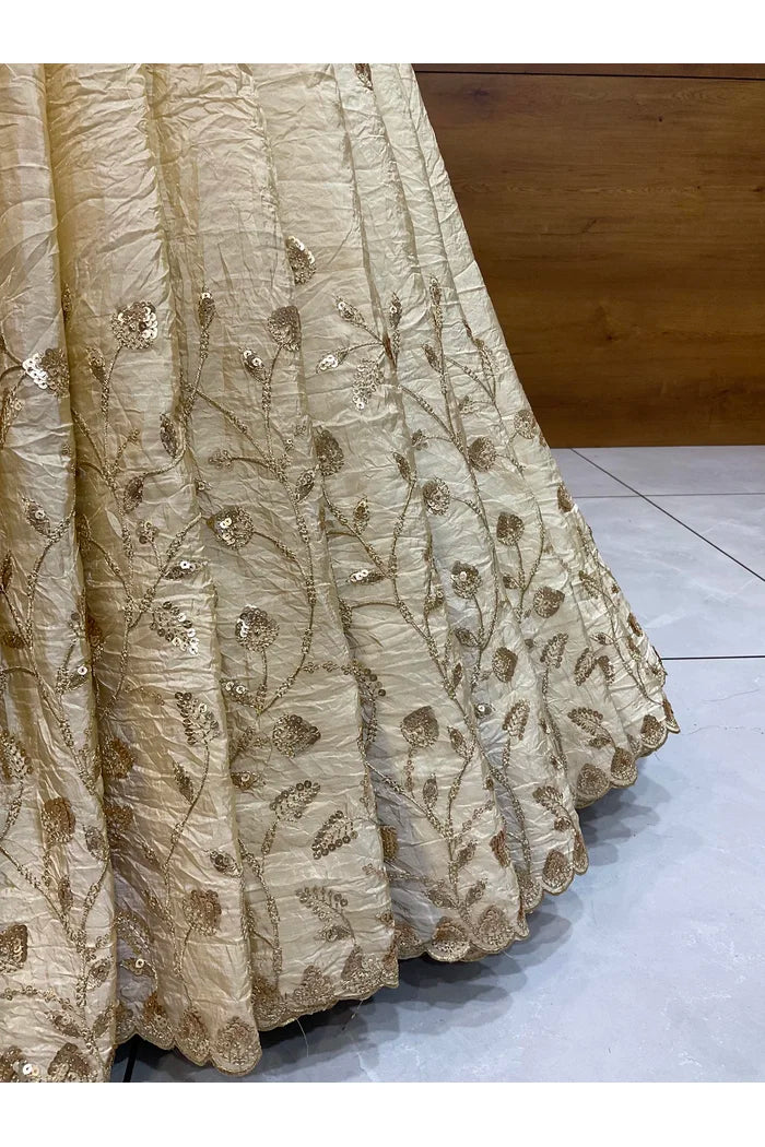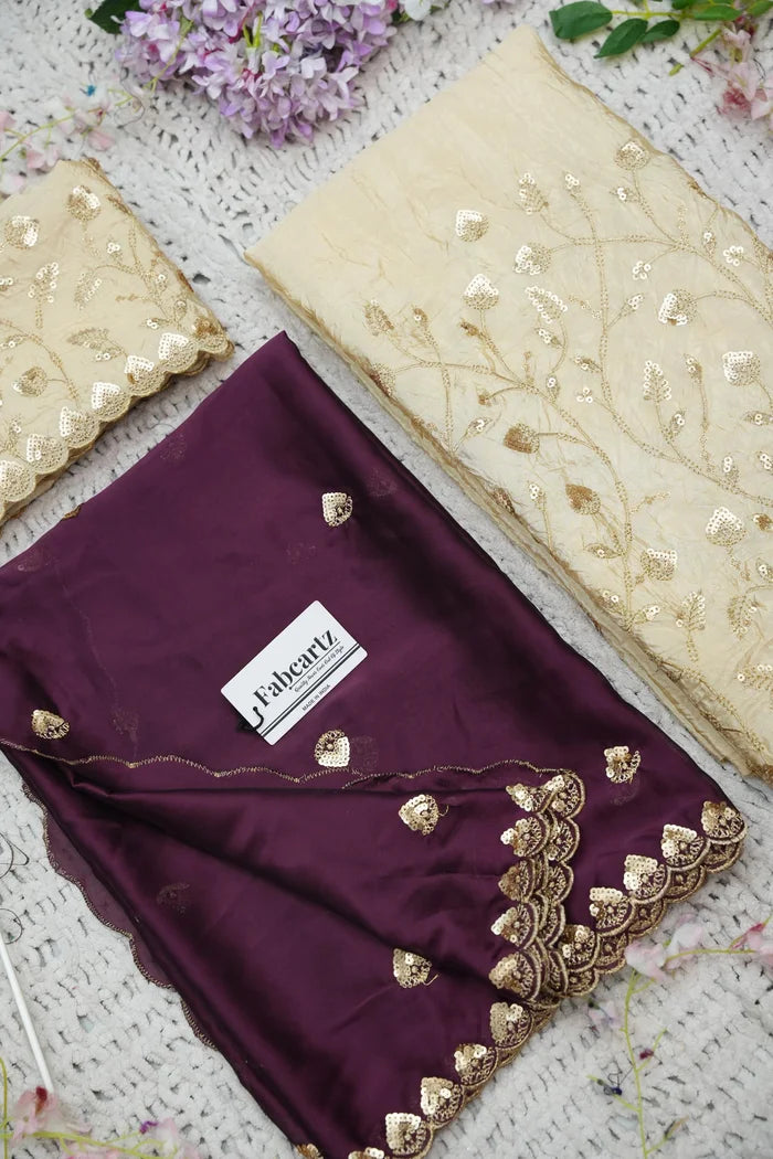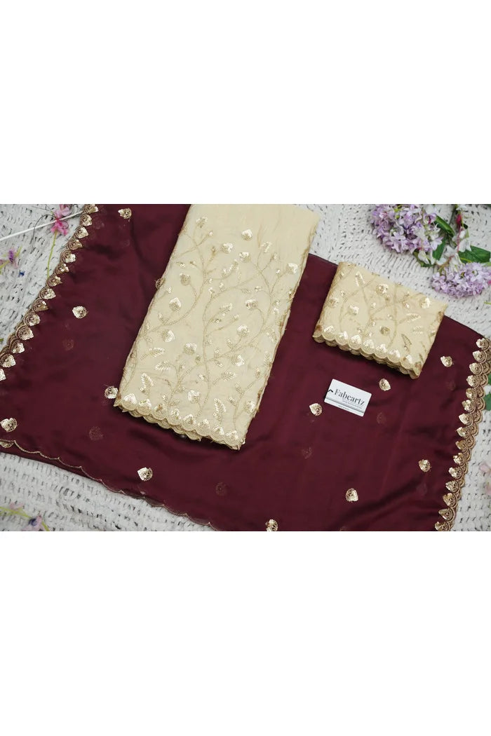 Crafted from Taffeta Satin (Lichi Silk) with intricate Zari work, offering a rich and elegant look.