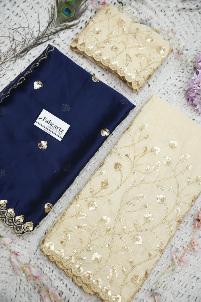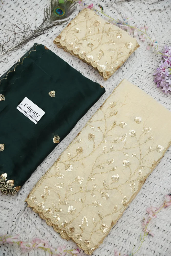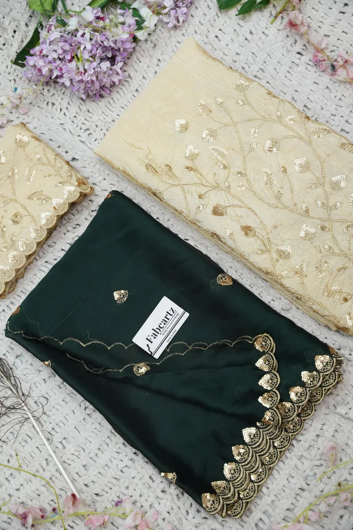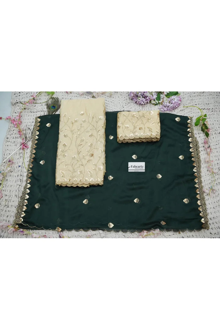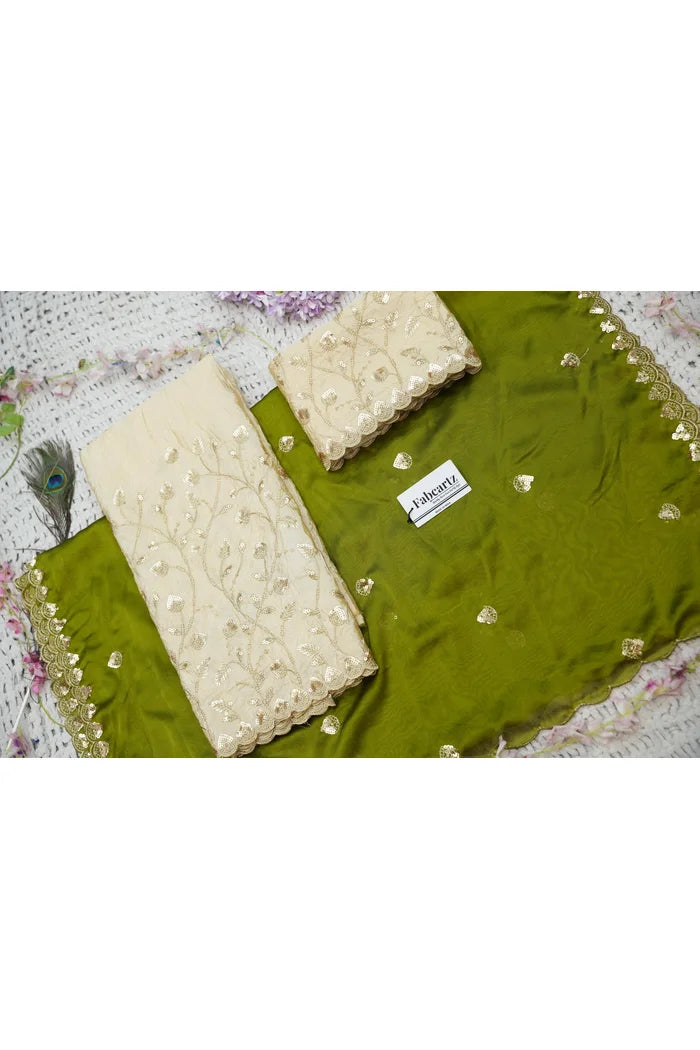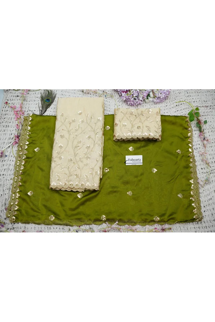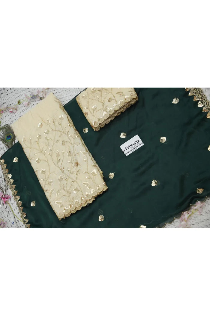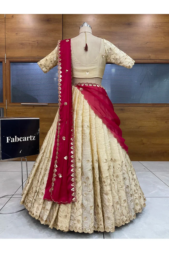 Crafted from Taffeta Satin (Lichi Silk) with intricate Zari work, offering a rich and elegant look.