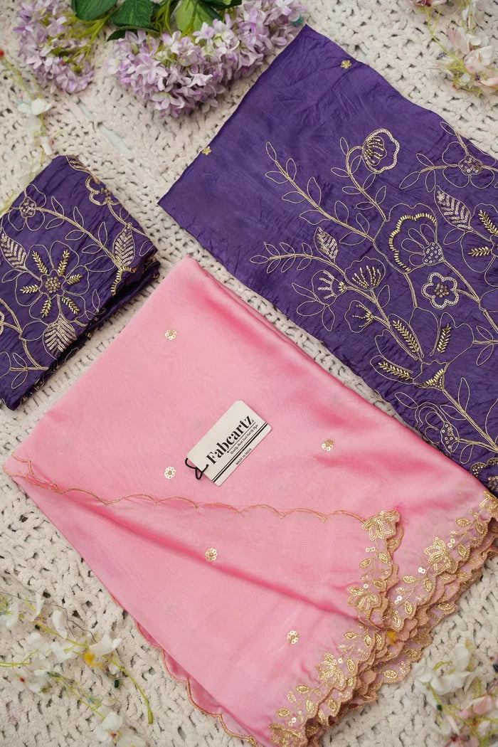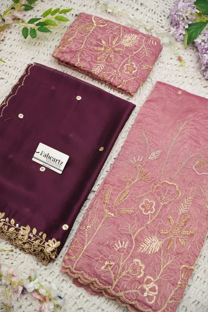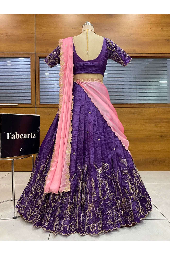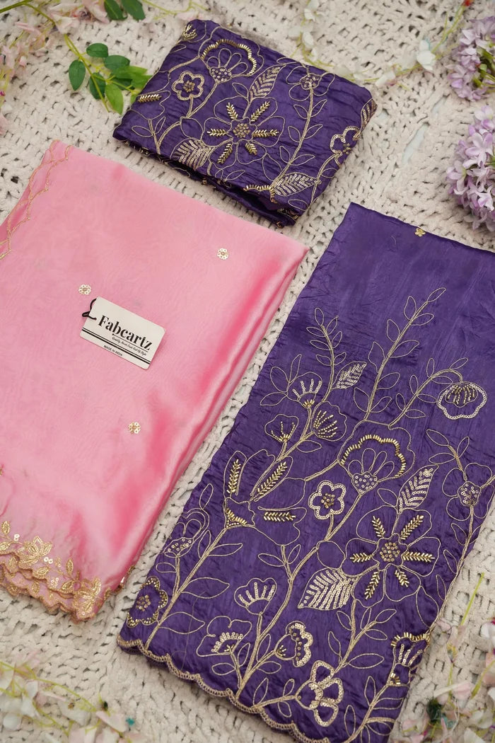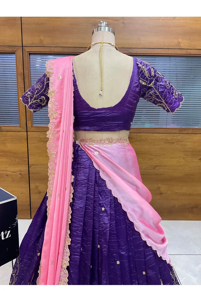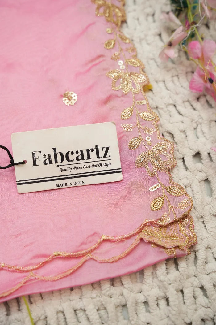 Crafted from Taffeta Satin (Lichi Silk) with intricate Zari work, offering a rich and elegant look.