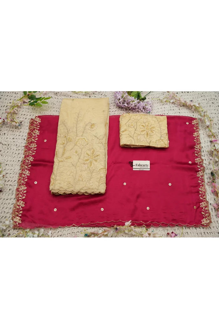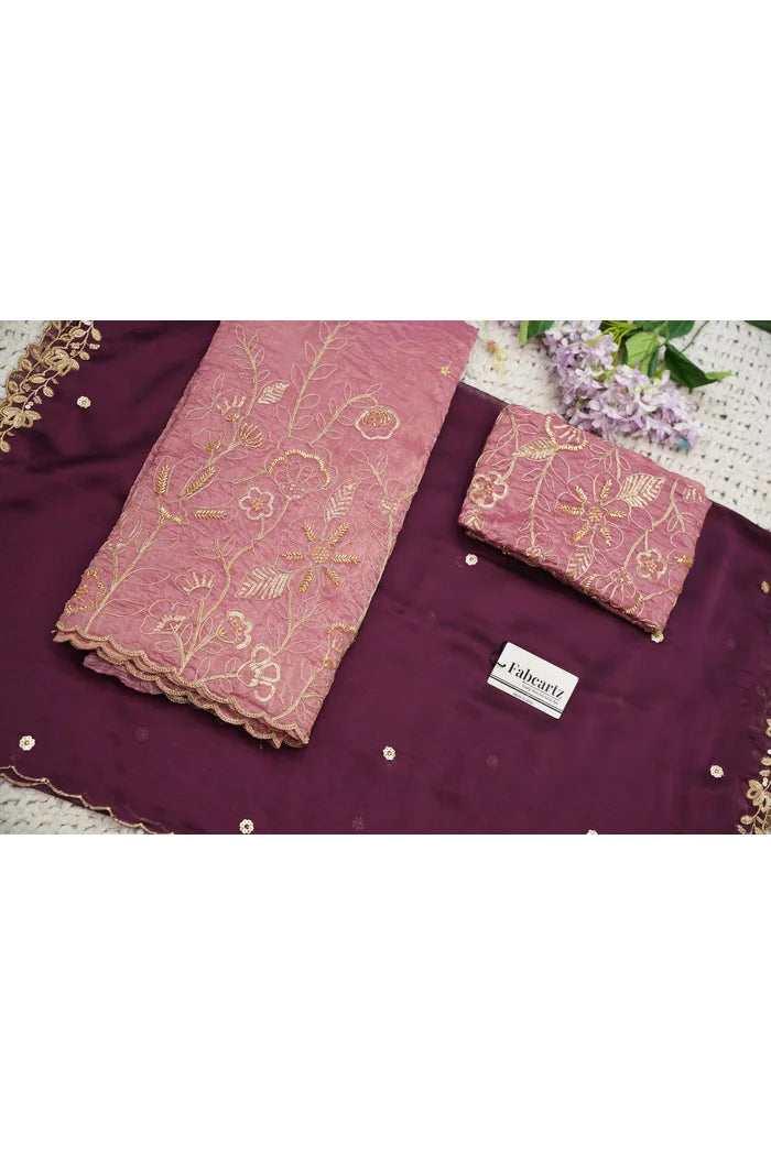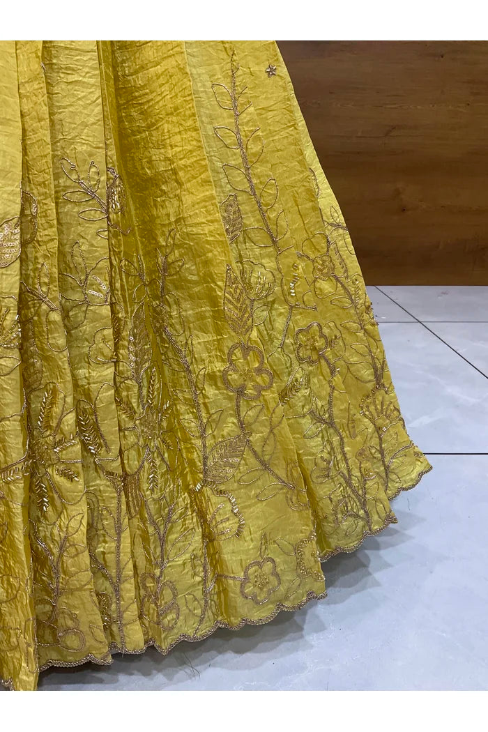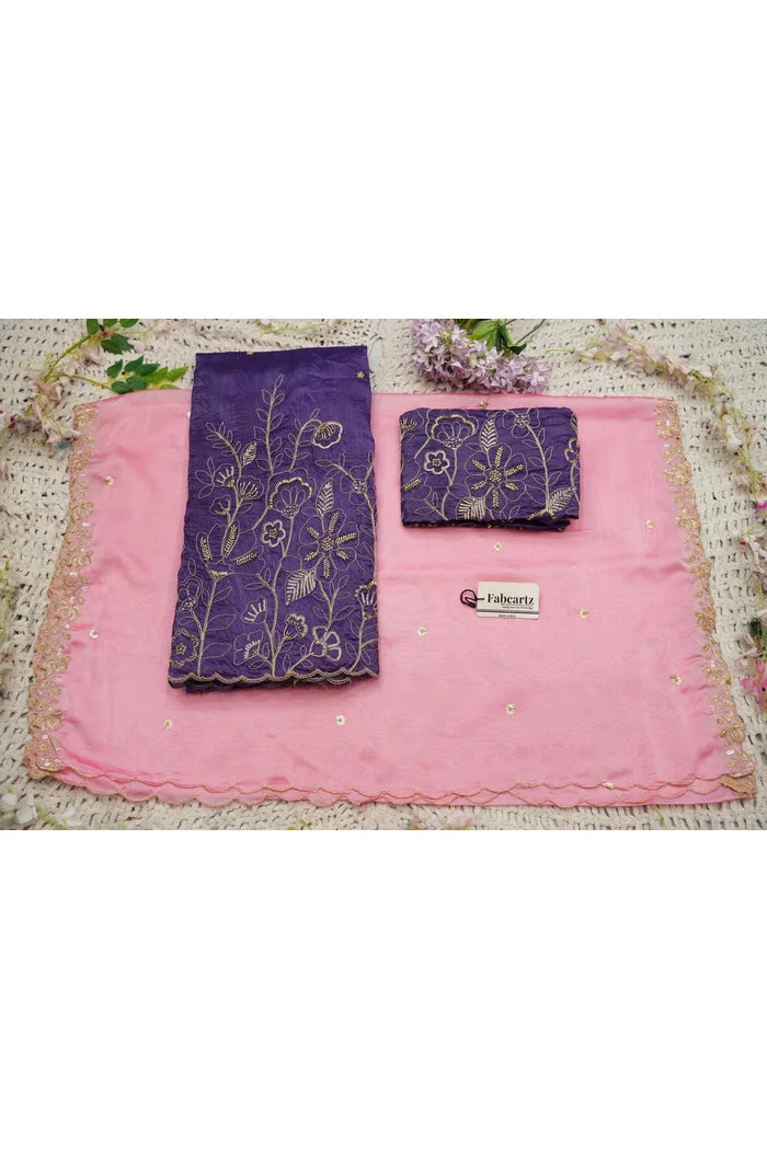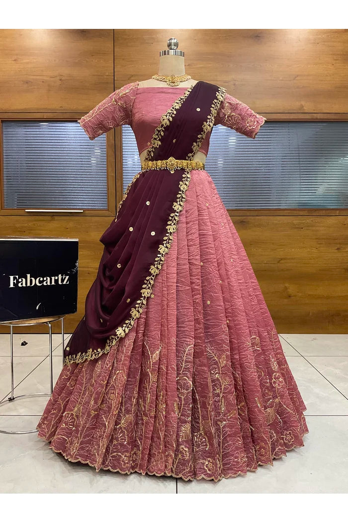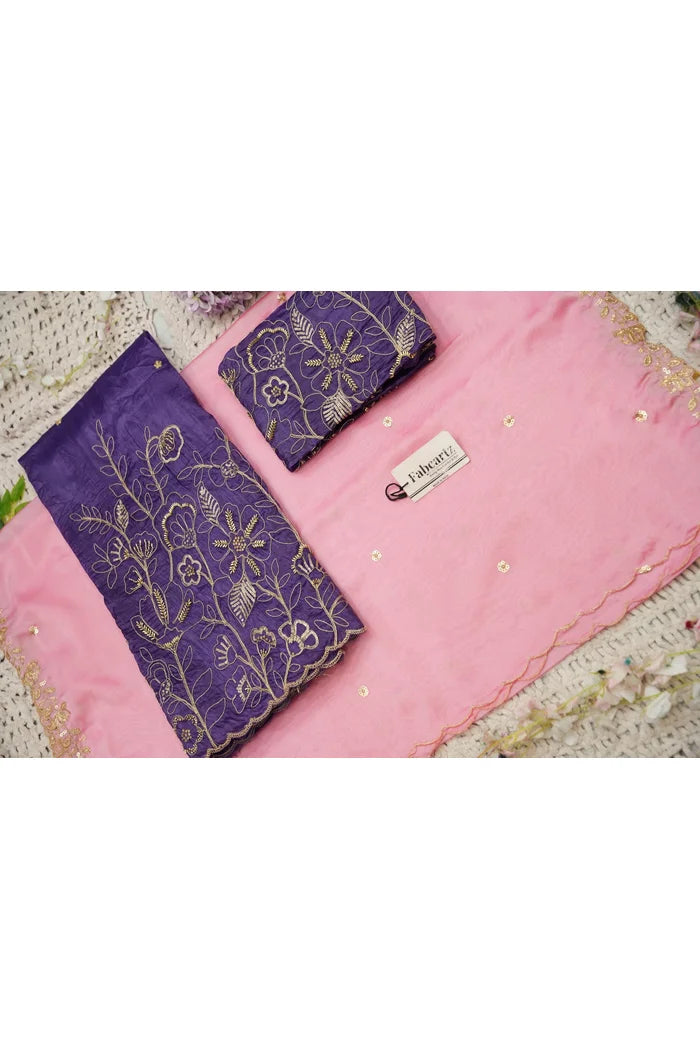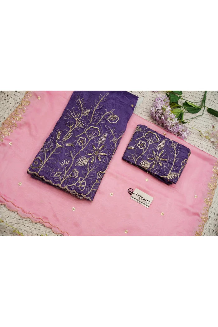 Crafted from Taffeta Satin (Lichi Silk) with intricate Zari work, offering a rich and elegant look.