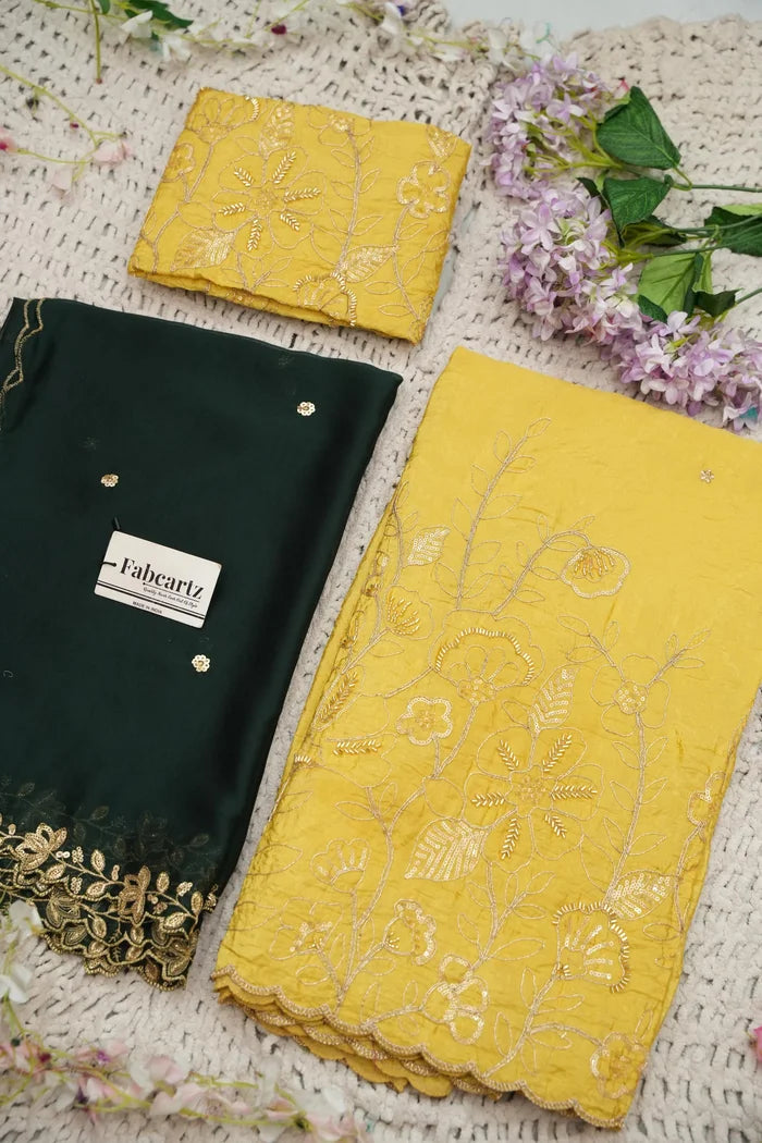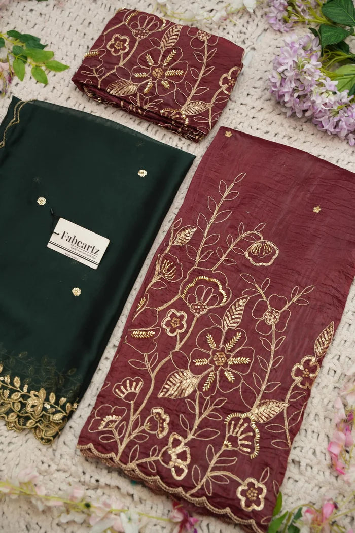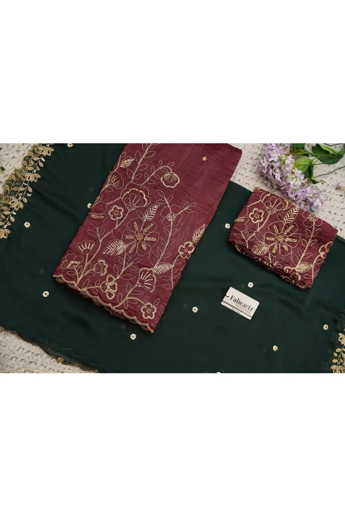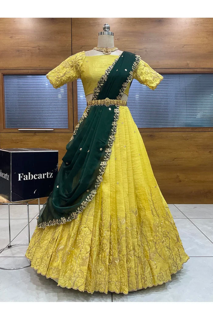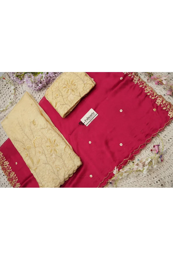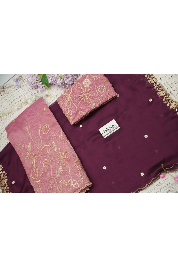 Crafted from Taffeta Satin (Lichi Silk) with intricate Zari work, offering a rich and elegant look.