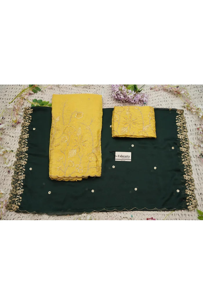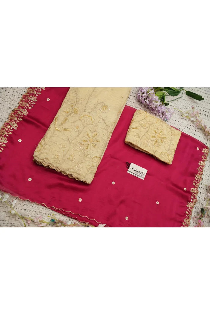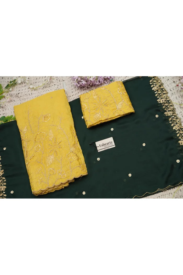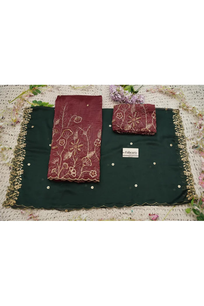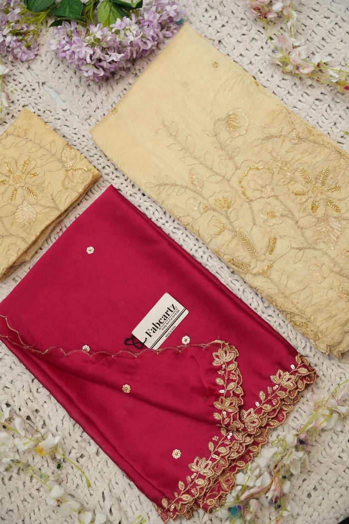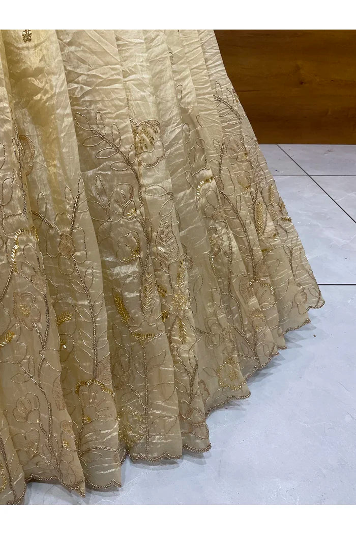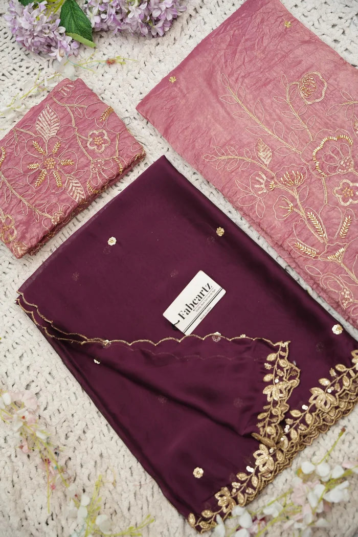 Crafted from Taffeta Satin (Lichi Silk) with intricate Zari work, offering a rich and elegant look.