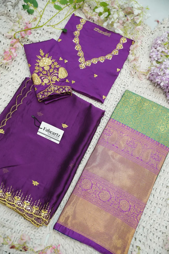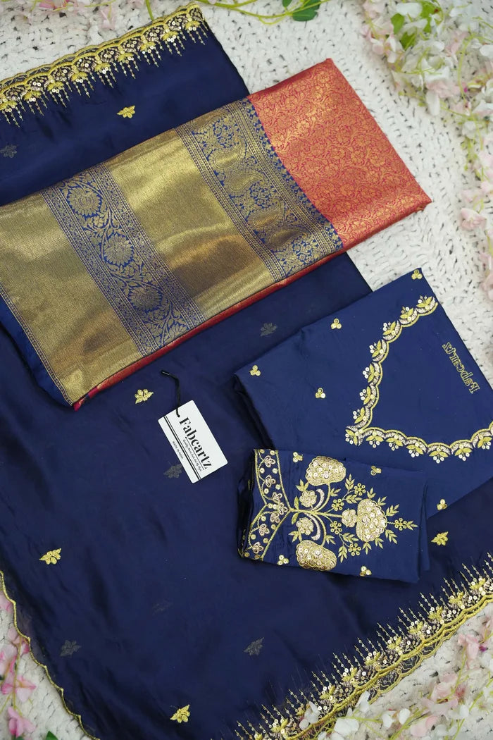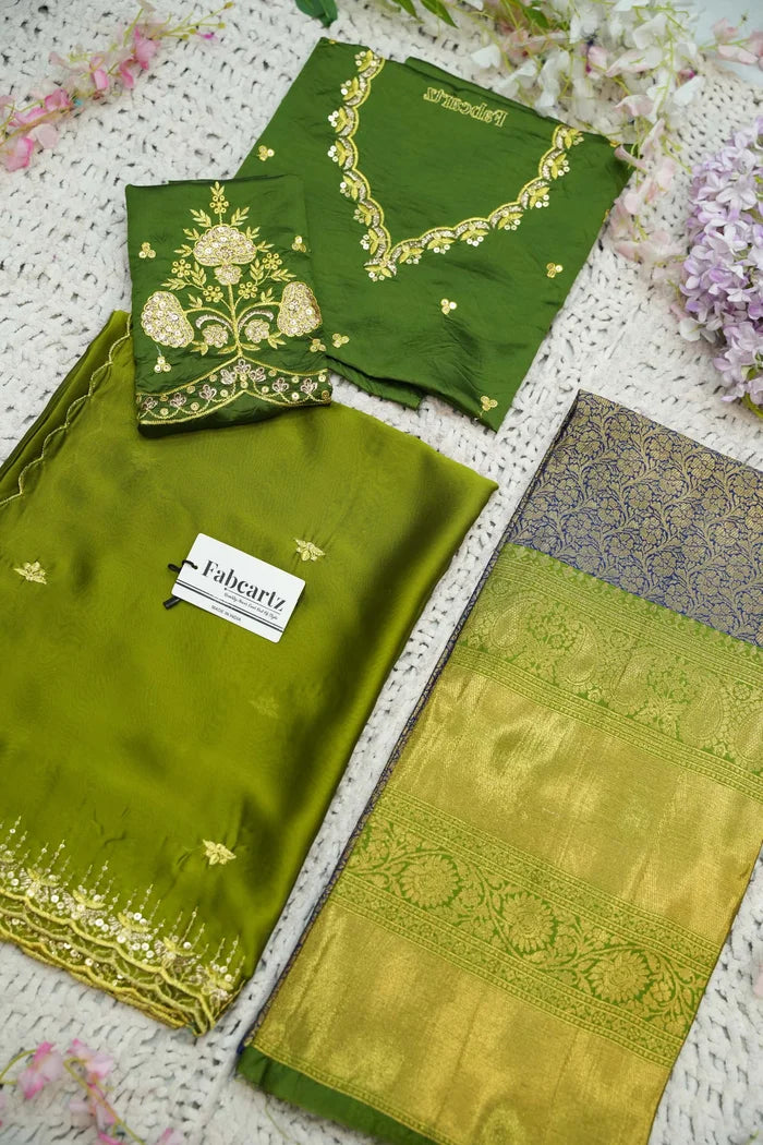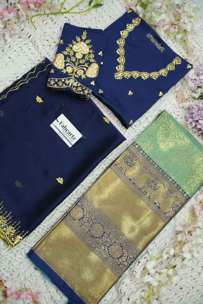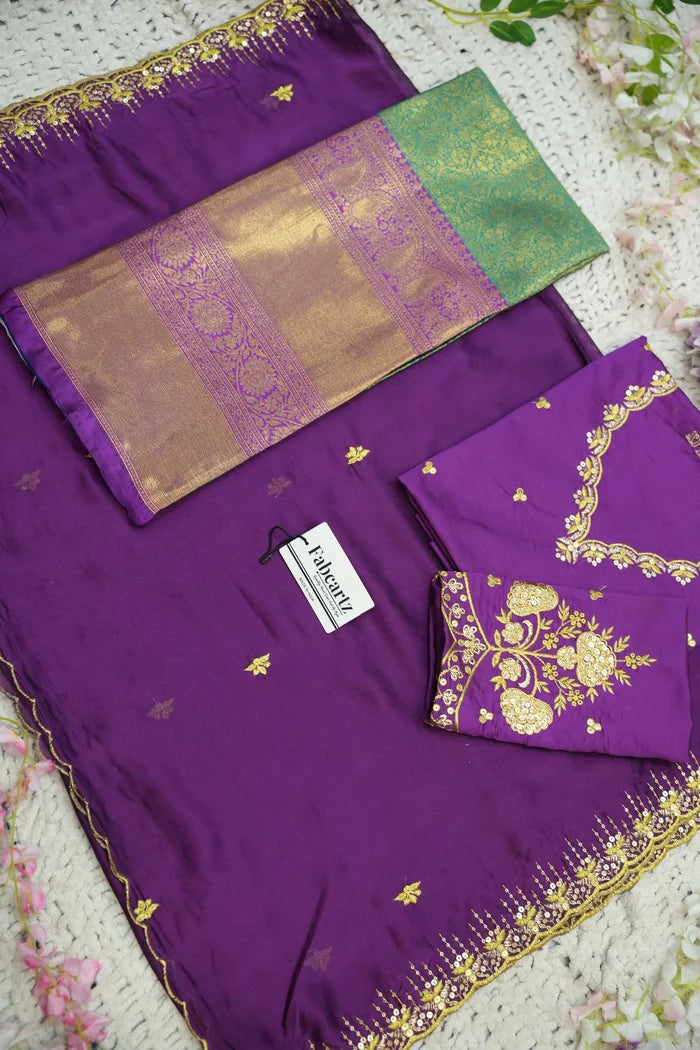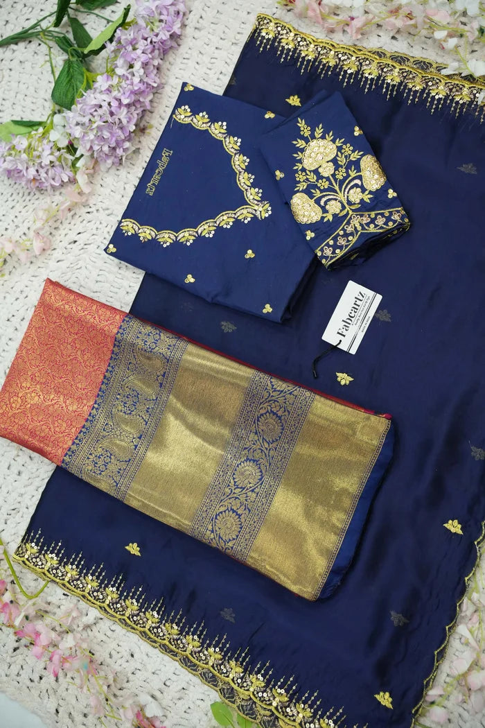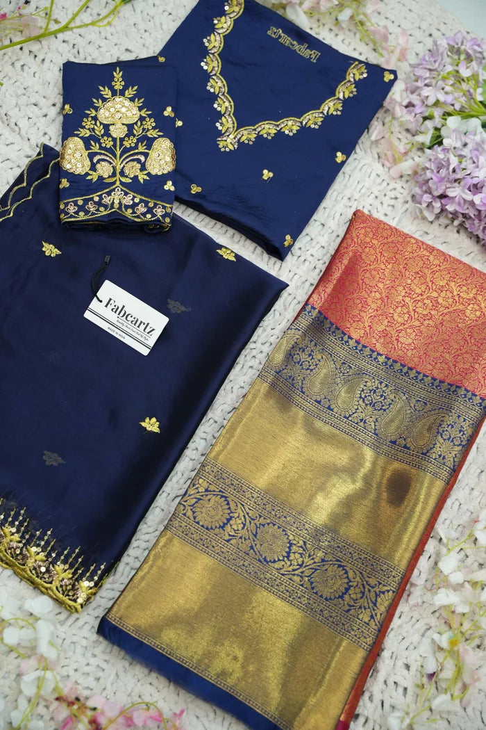Crafted from Taffeta Satin (Lichi Silk) with intricate Zari work, offering a rich and elegant look.
