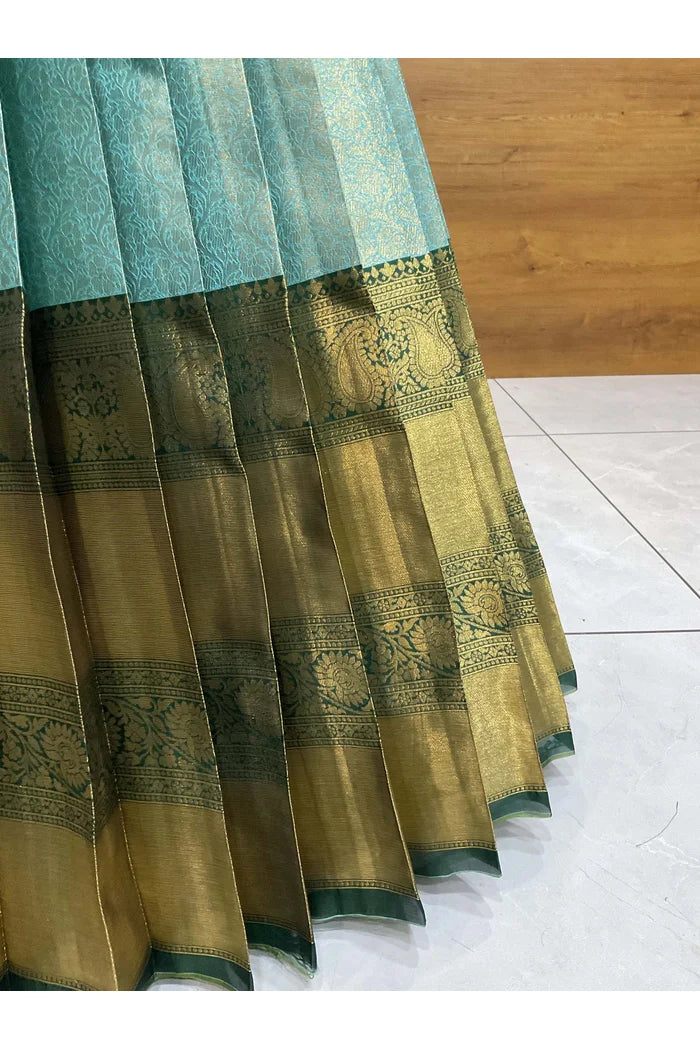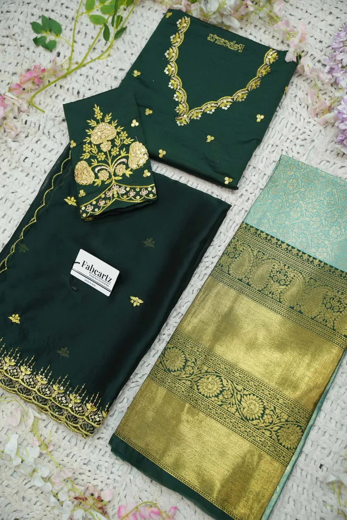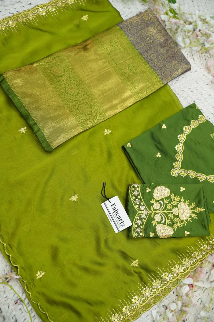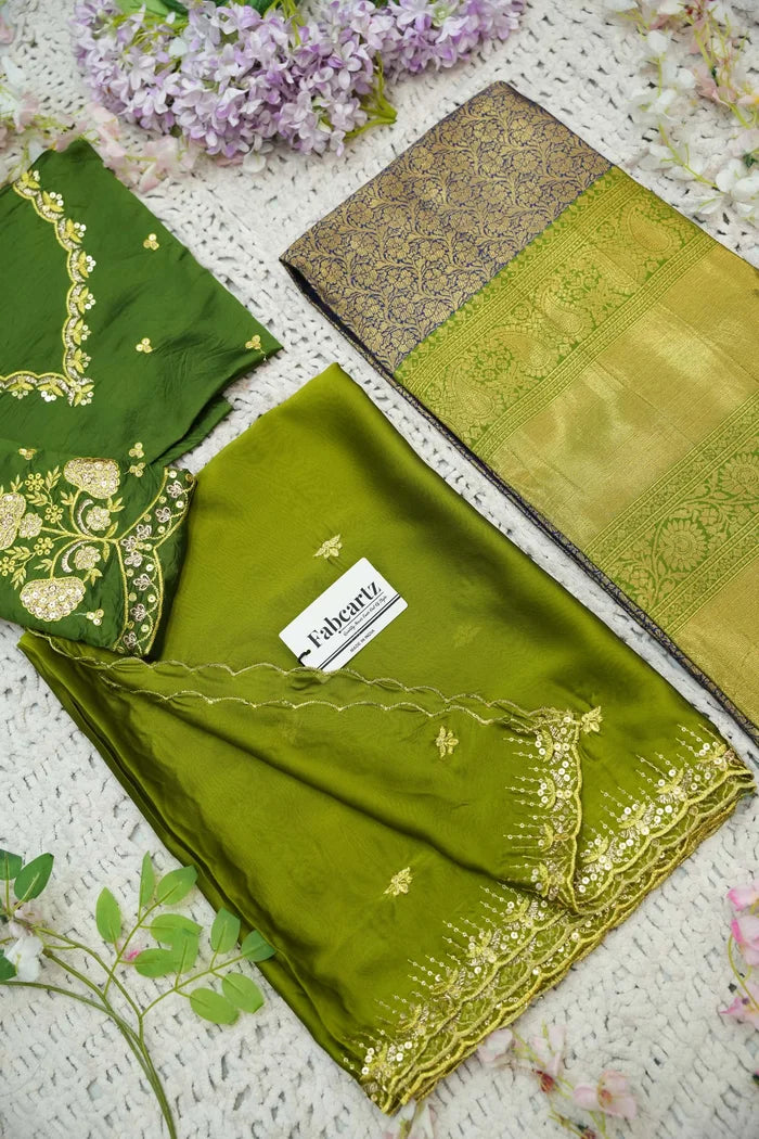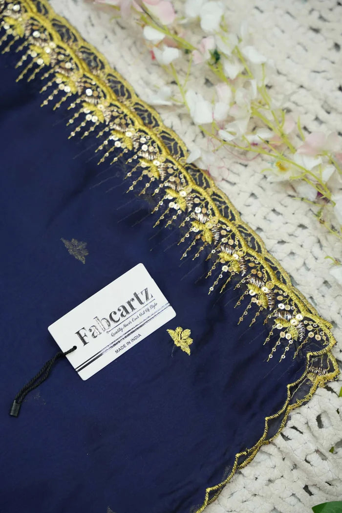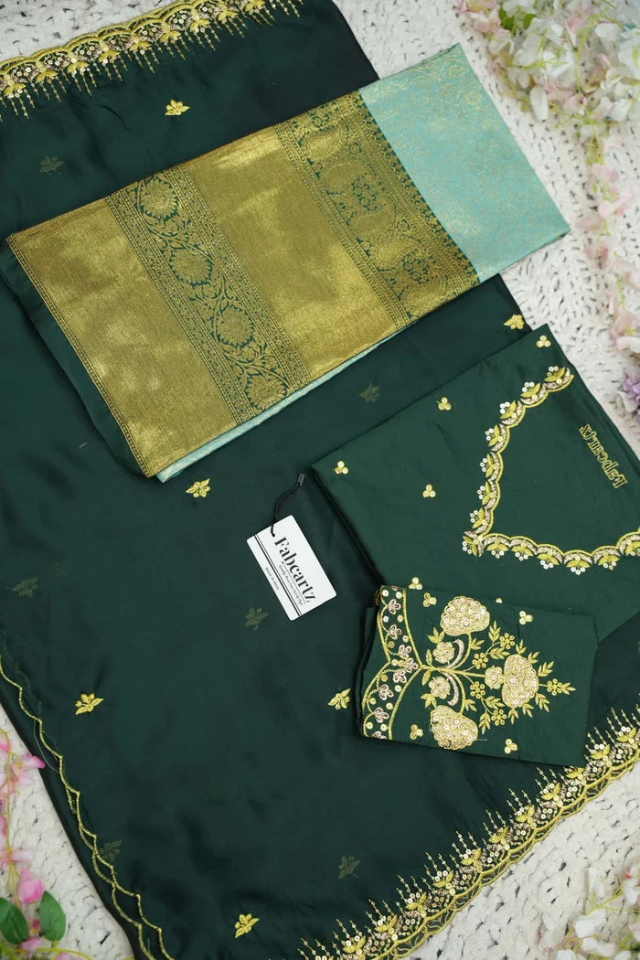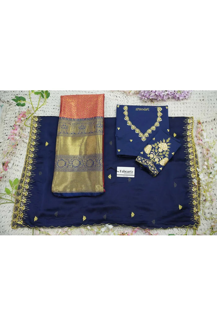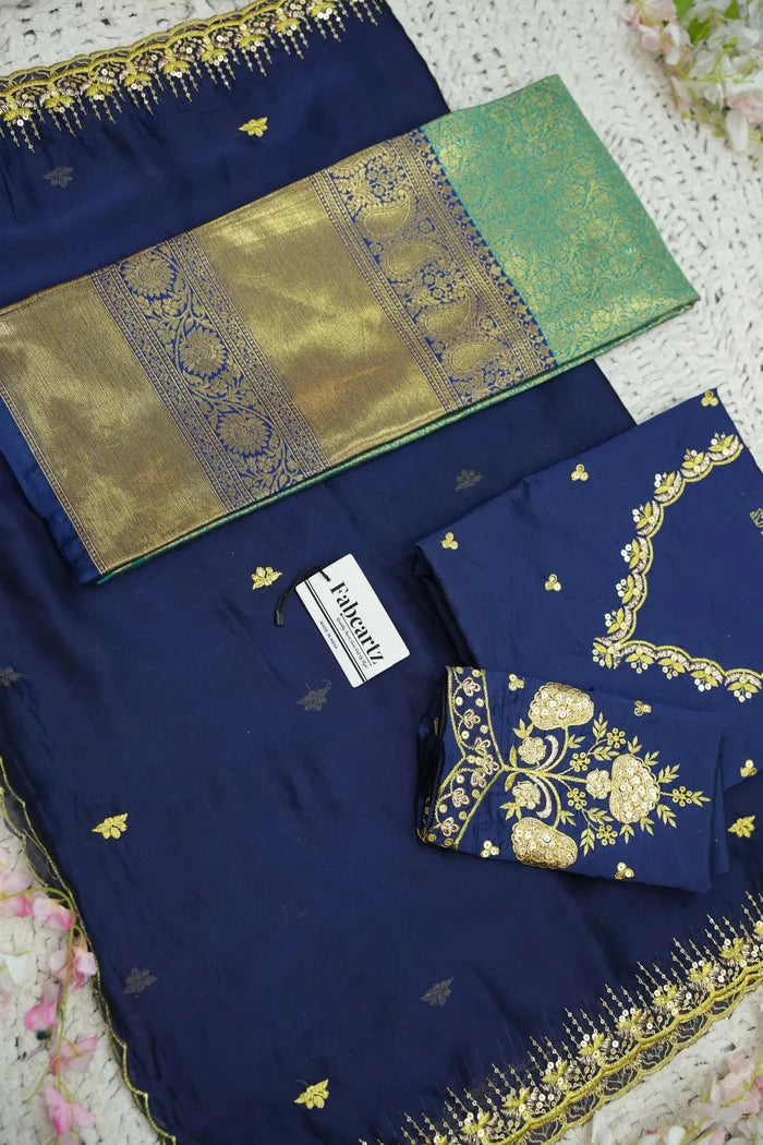 Crafted from Taffeta Satin (Lichi Silk) with intricate Zari work, offering a rich and elegant look.