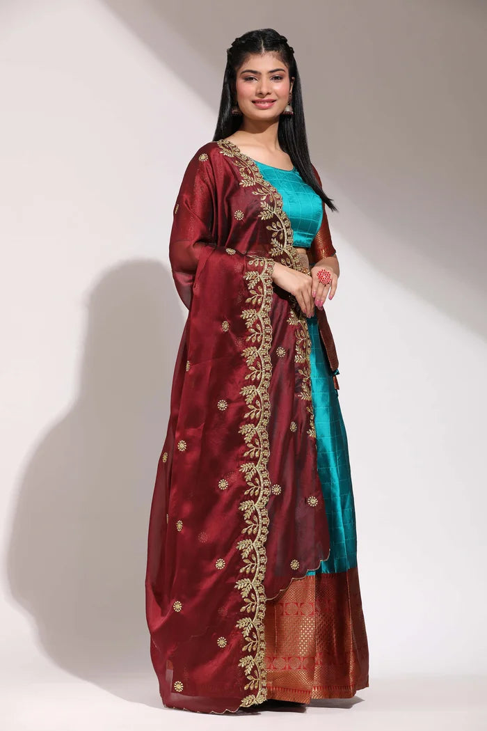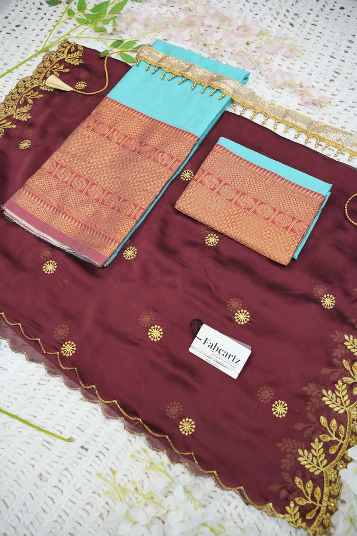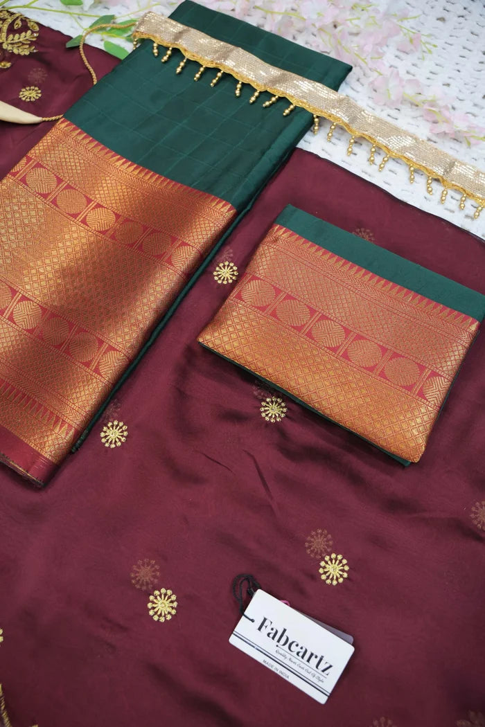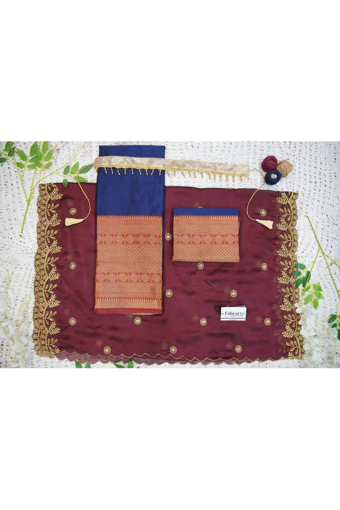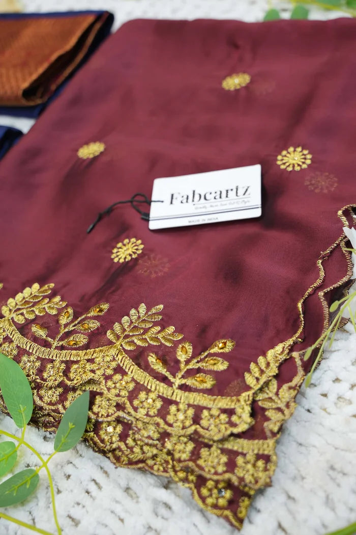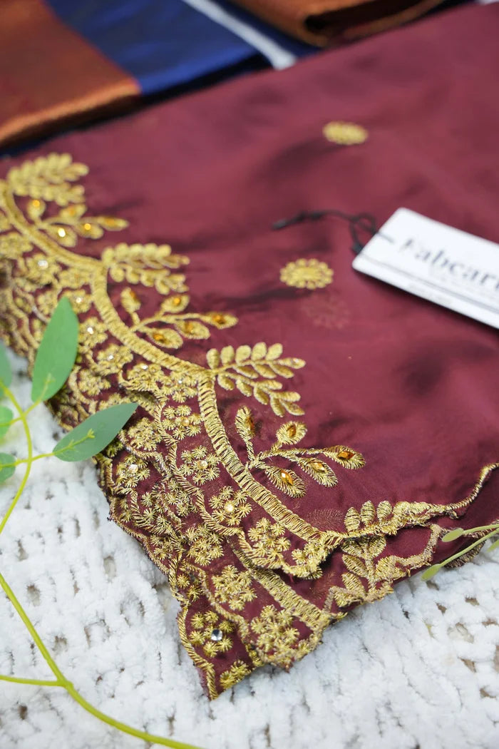 Crafted from Taffeta Satin (Litchi Silk) with intricate Zari work, offering a rich and elegant look.