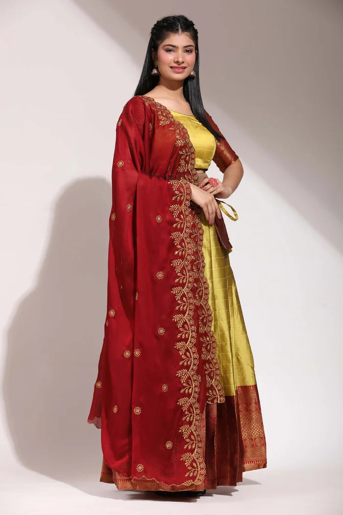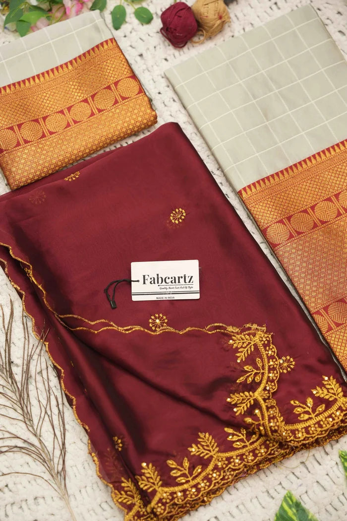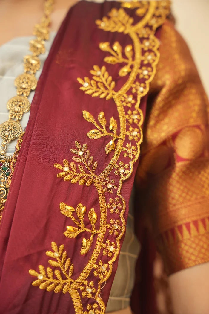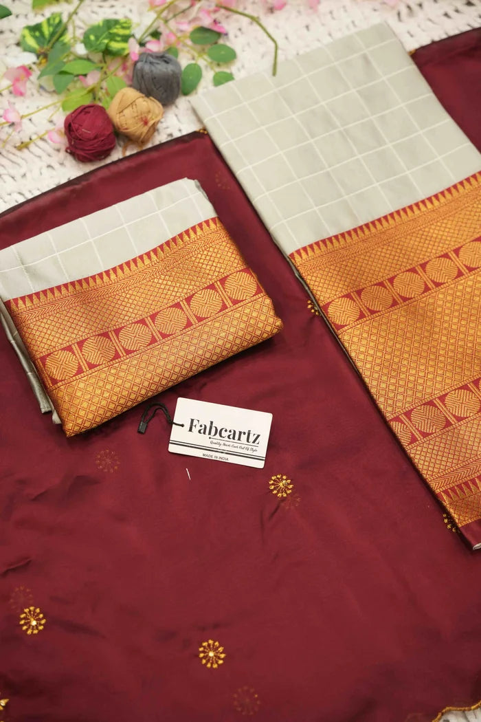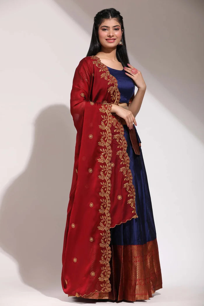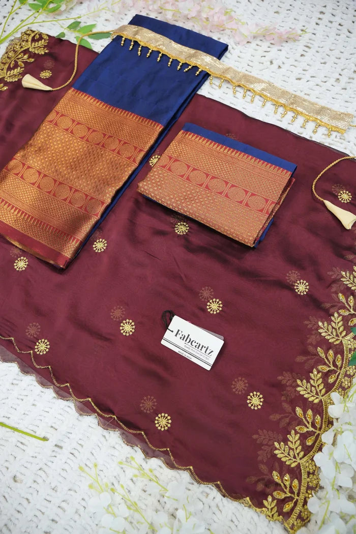 Crafted from Taffeta Satin (Litchi Silk) with intricate Zari work, offering a rich and elegant look.