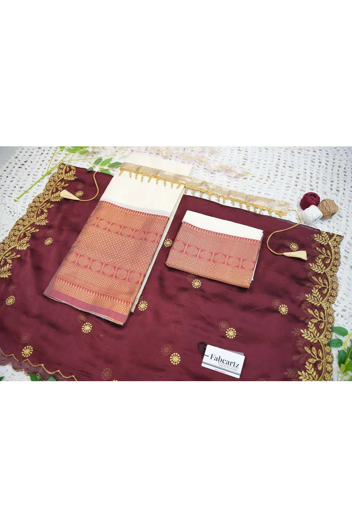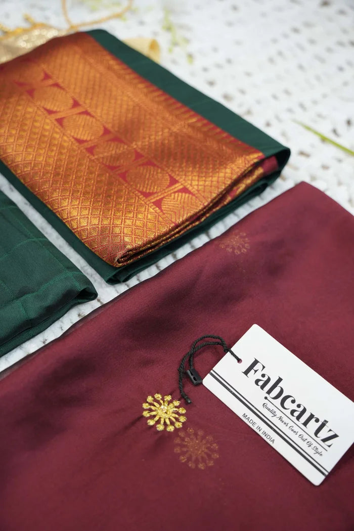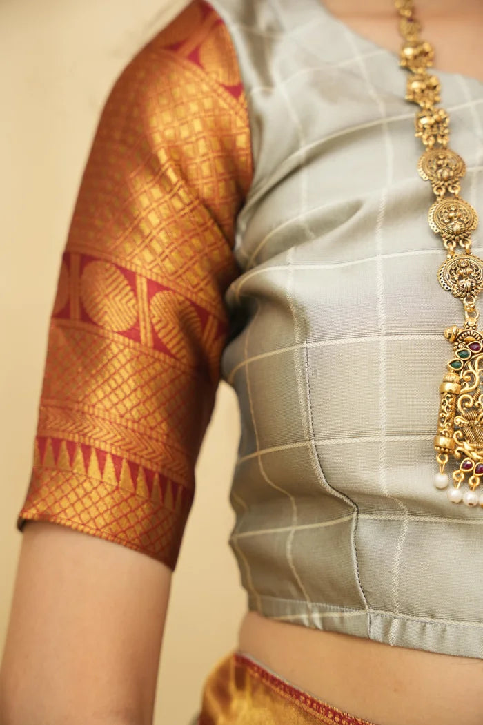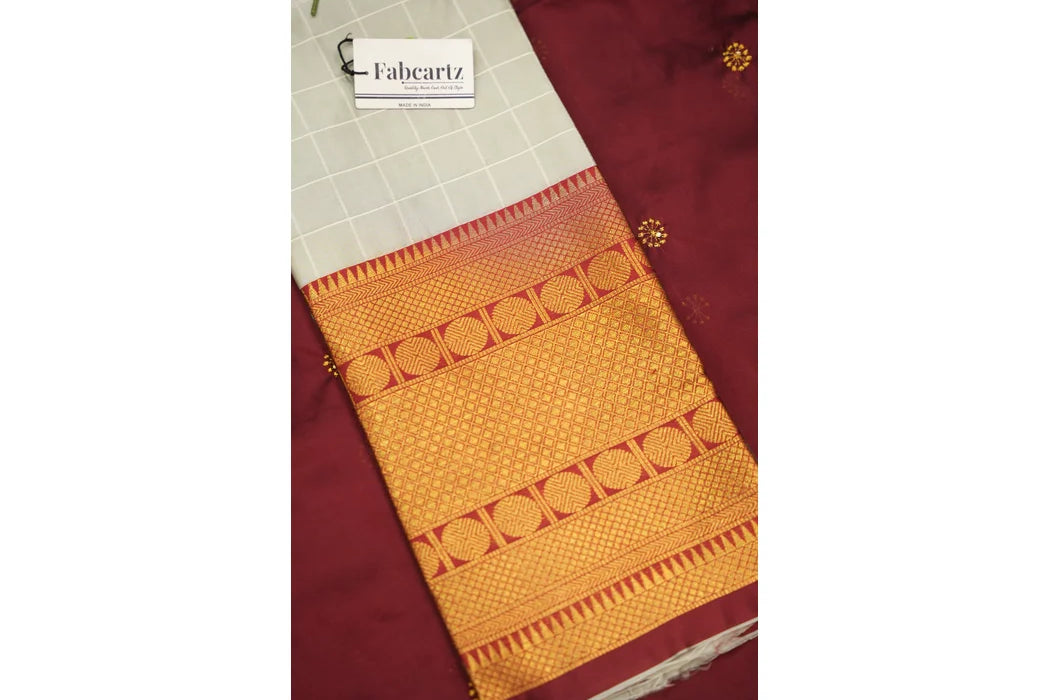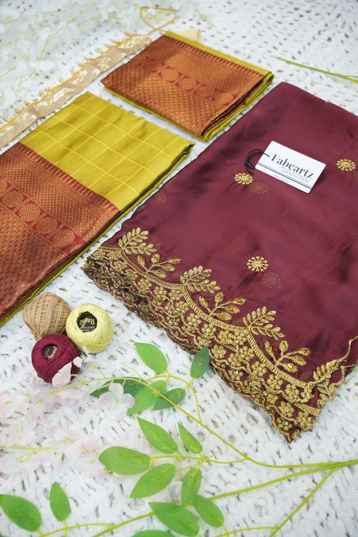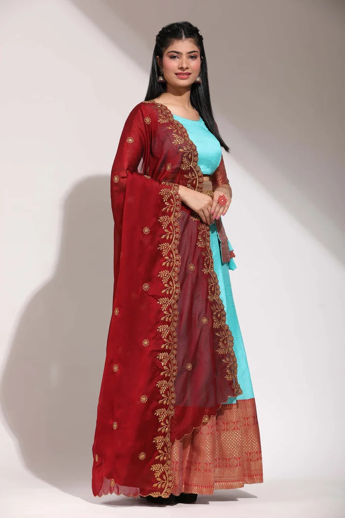 Crafted from Taffeta Satin (Litchi Silk) with intricate Zari work, offering a rich and elegant look.