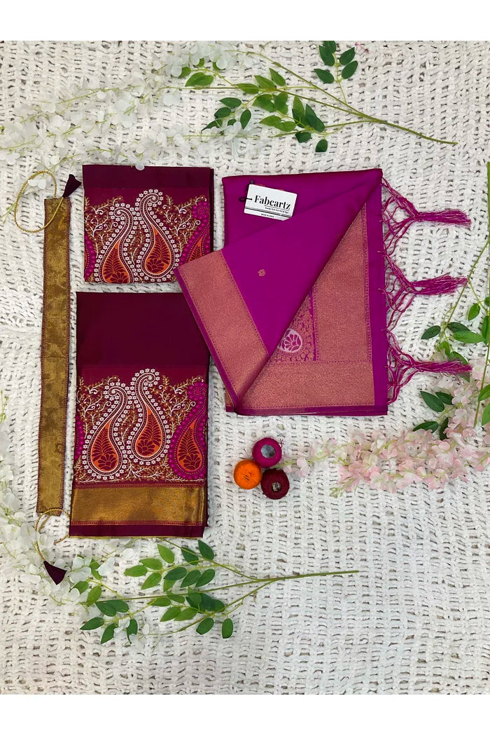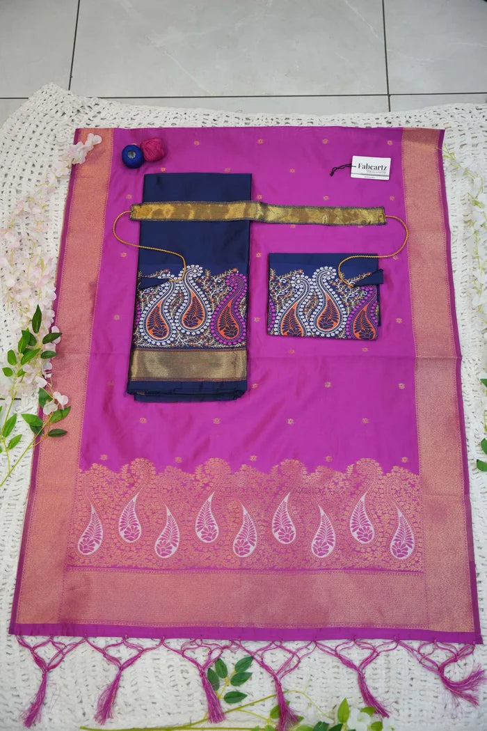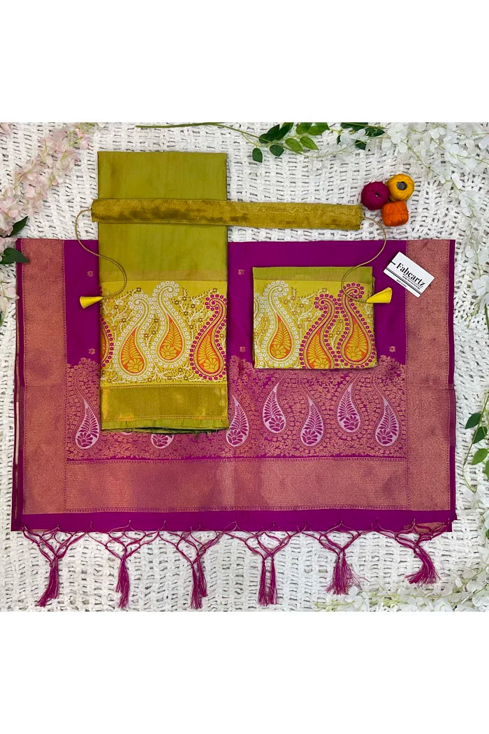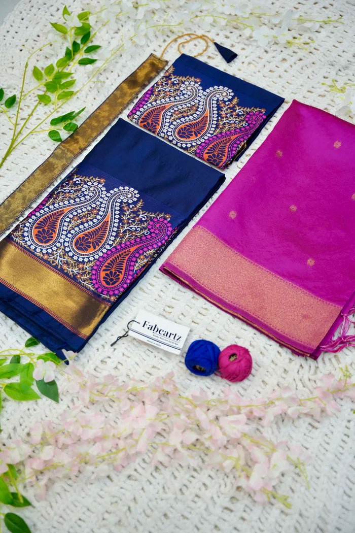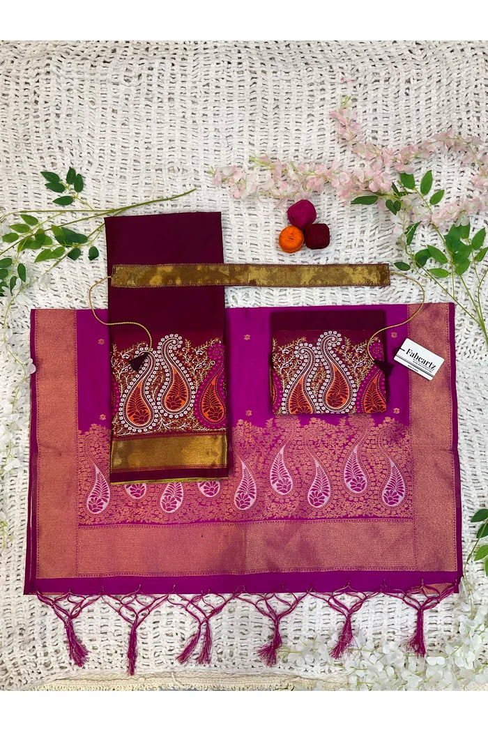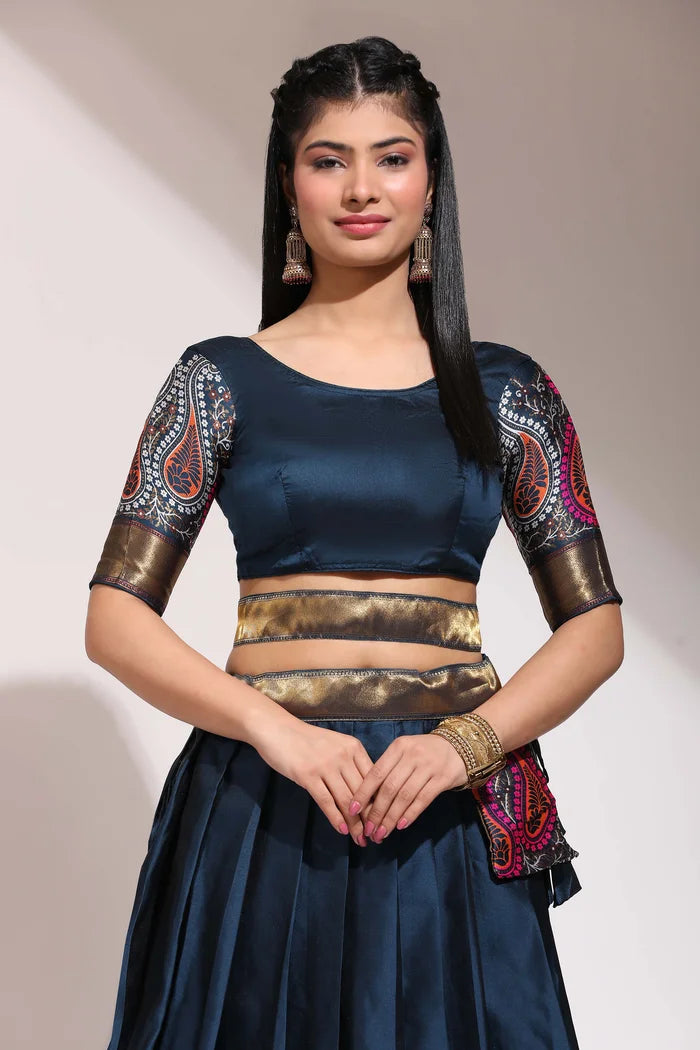 Crafted from Taffeta Satin (Litchi Silk) with intricate Zari work, offering a rich and elegant look.