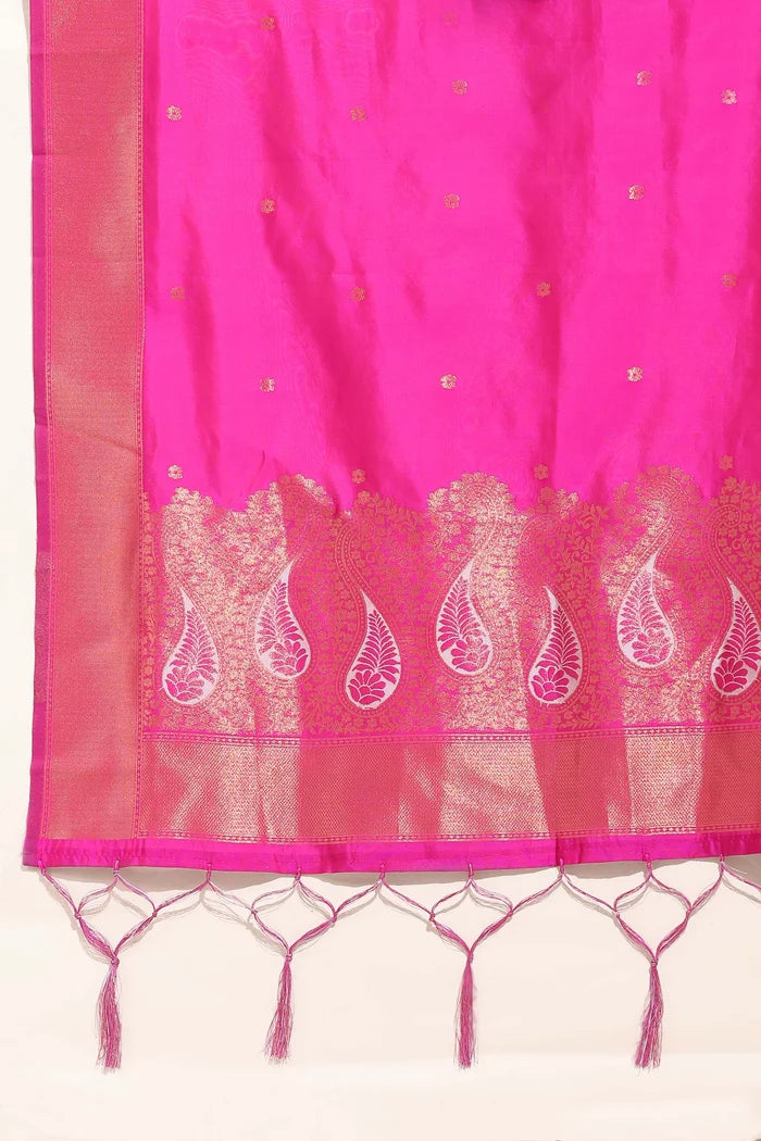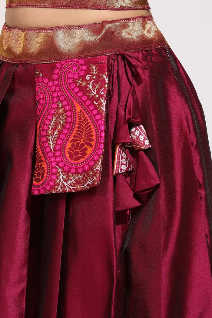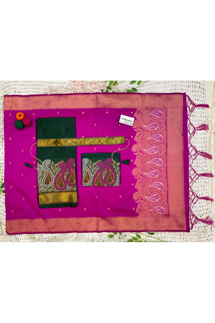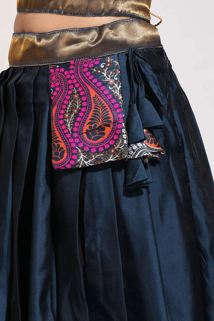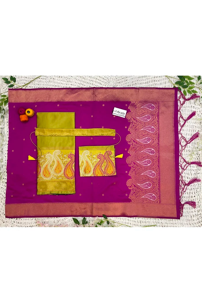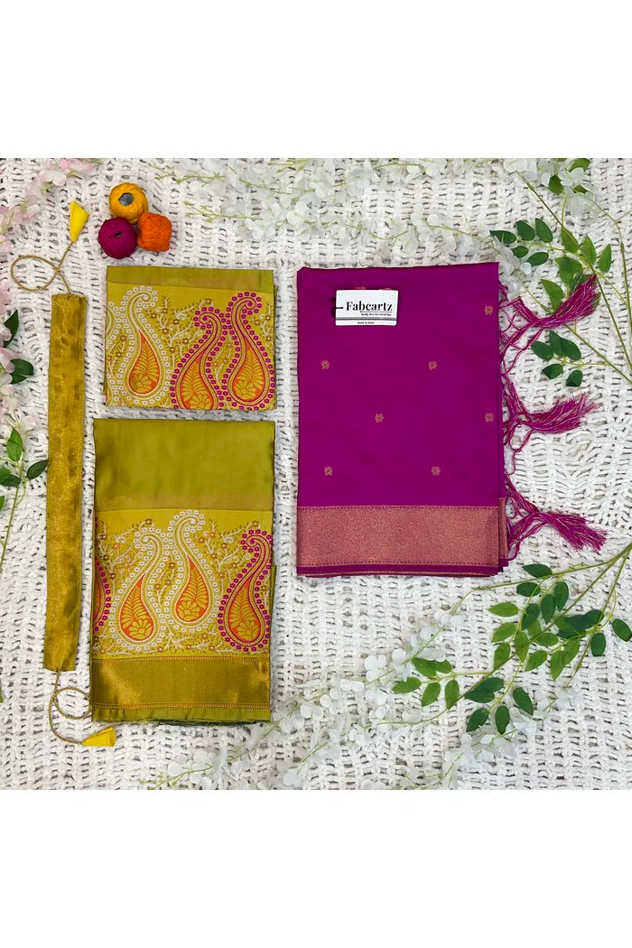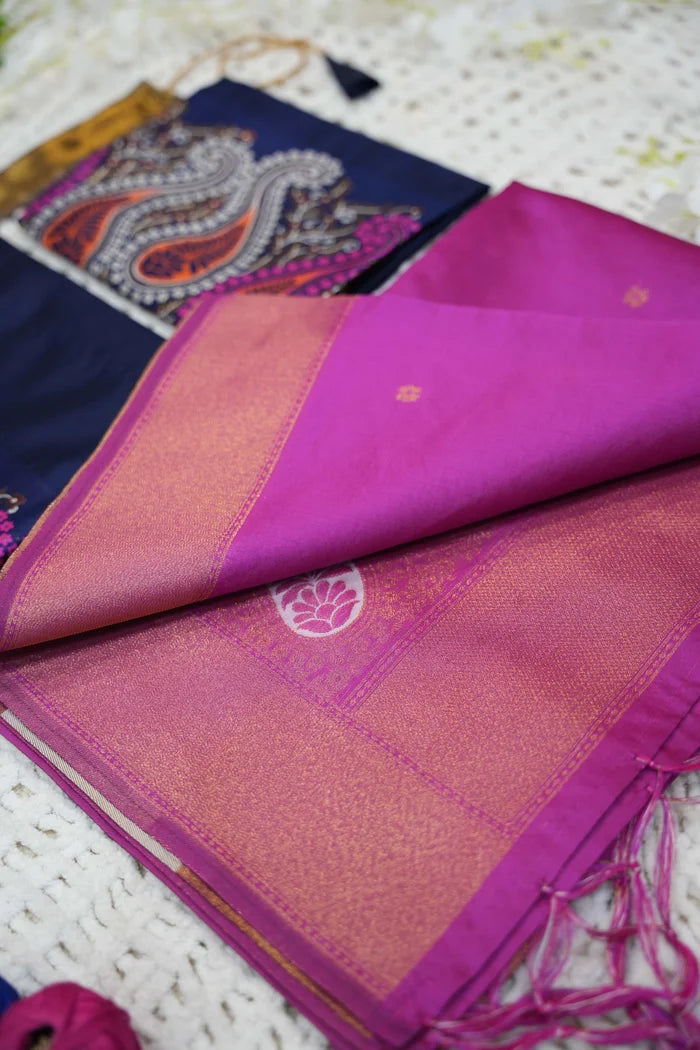 Crafted from Taffeta Satin (Litchi Silk) with intricate Zari work, offering a rich and elegant look.