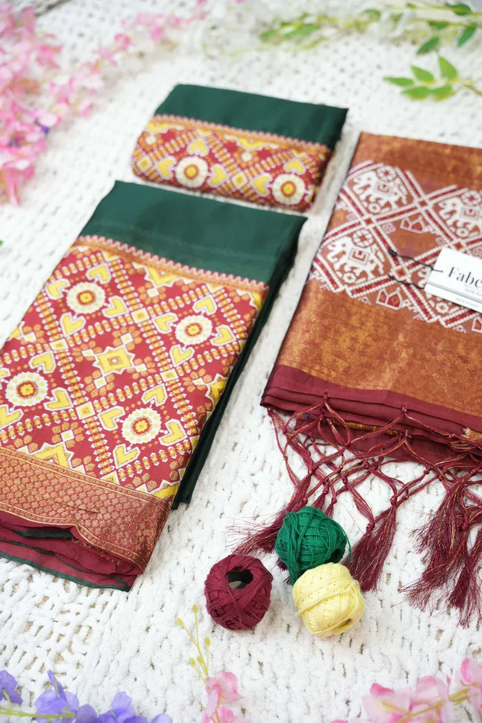 SKU: SKU: RK3956 ArrowPattu (Kv) Bottle Green_Semistitched