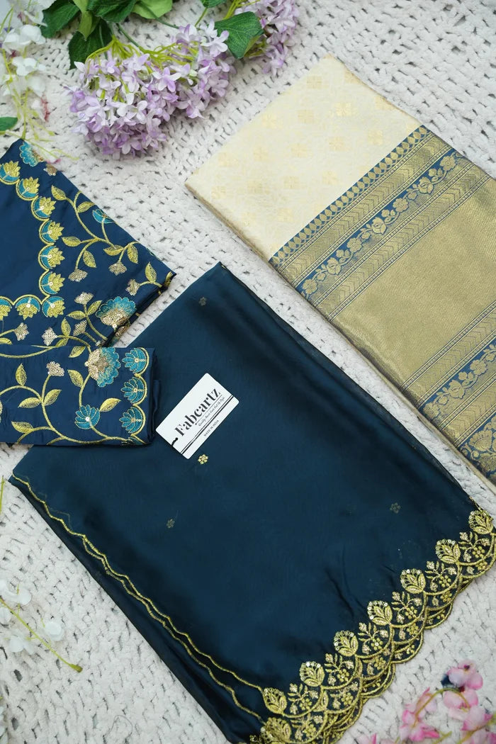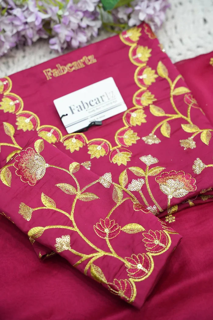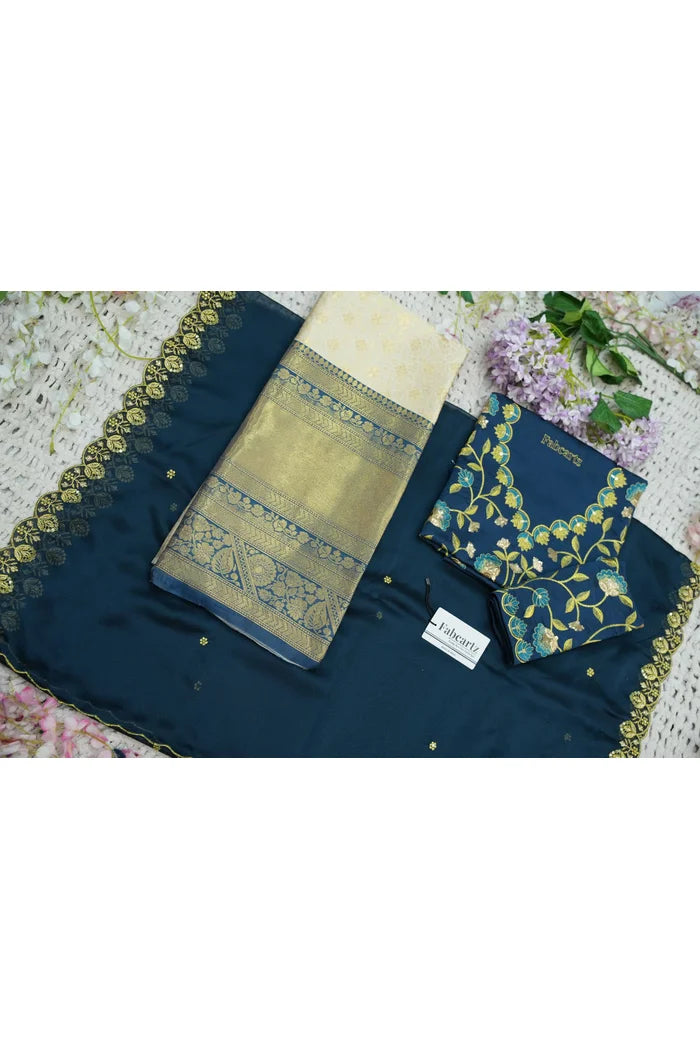 Crafted from Taffeta Satin (Lichi Silk) with intricate Zari work, offering a rich and elegant look.